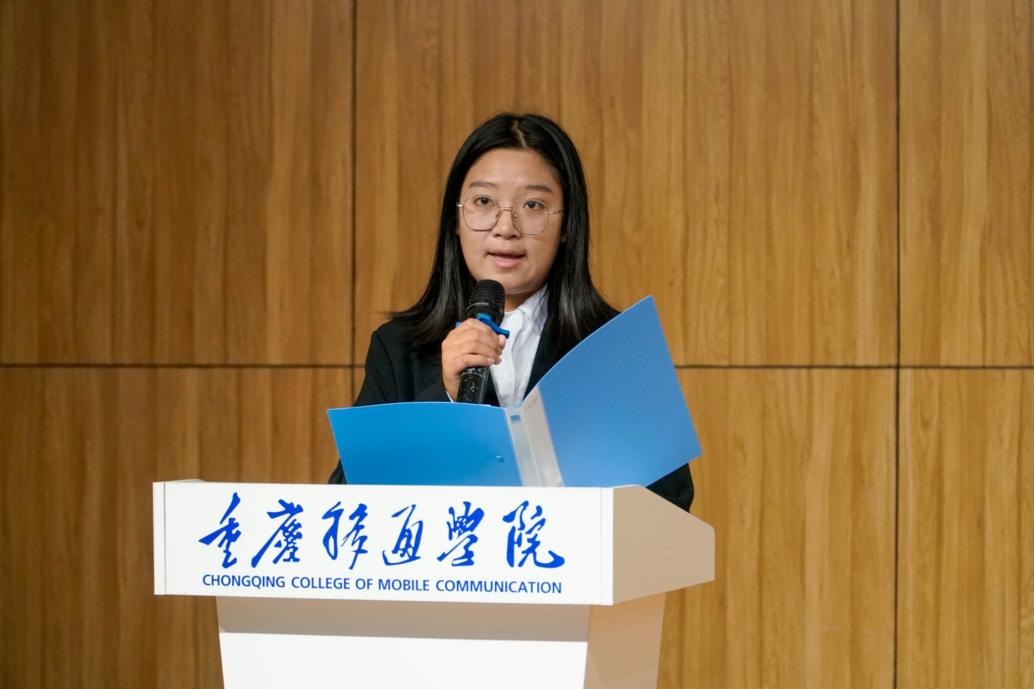 优秀学员代表刘玉婷走上发言台,真诚而动情地分享了自己在“青马工程”初阶班的学习感悟。她表示,通过参与一系列丰富而深入的理论学习课程和丰富多彩的实践活动,自己对马克思主义思想有了更为深刻、透彻的理解。这种理解不仅停留在理论层面,更让她明确了自己未来的方向。她坚定地说,未来将把所学所思切实转化为实际行动,积极投身于学院和社会的各项事业中,为学院的发展添砖加瓦,为社会的进步贡献自己的青春智慧。