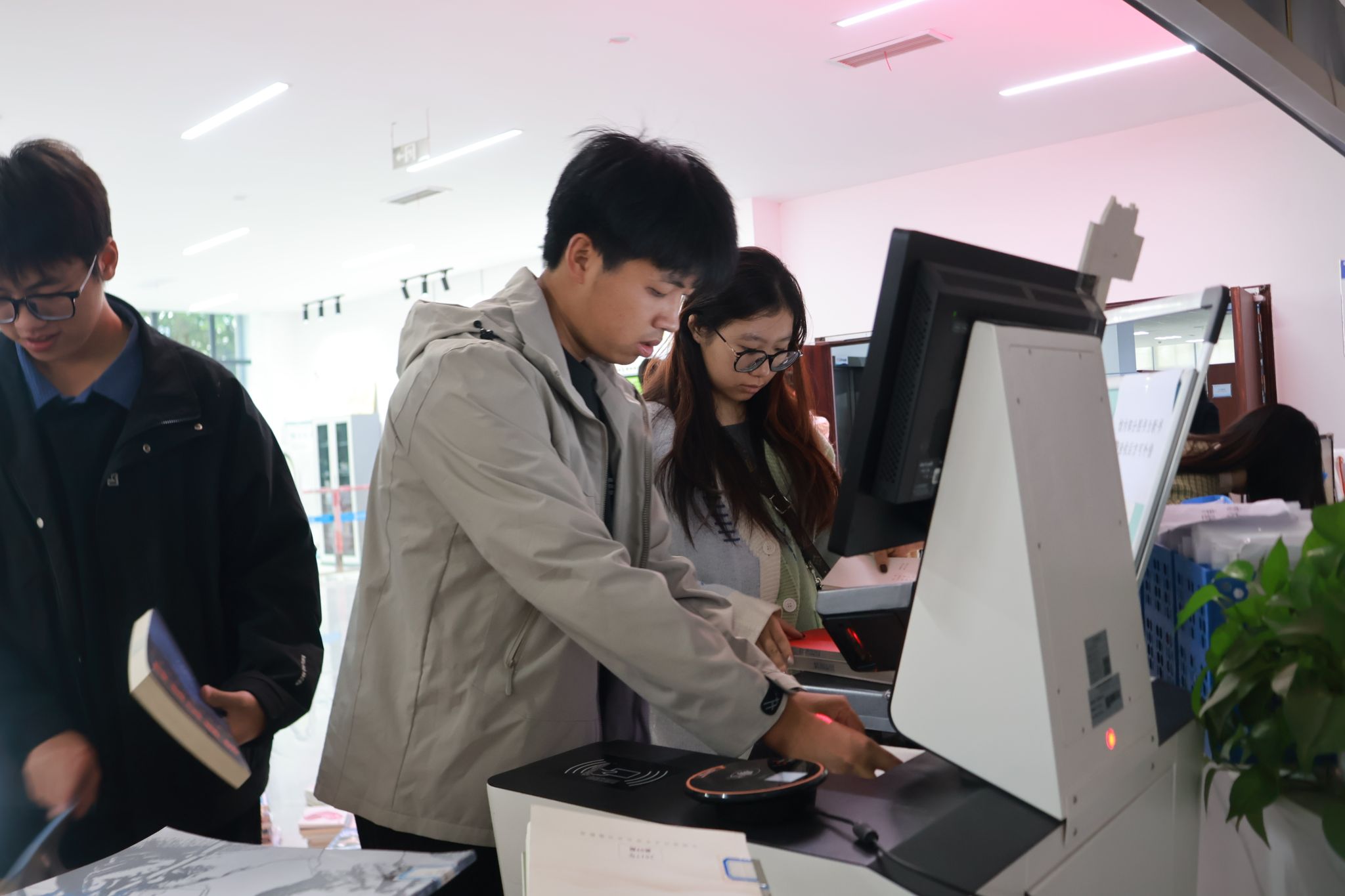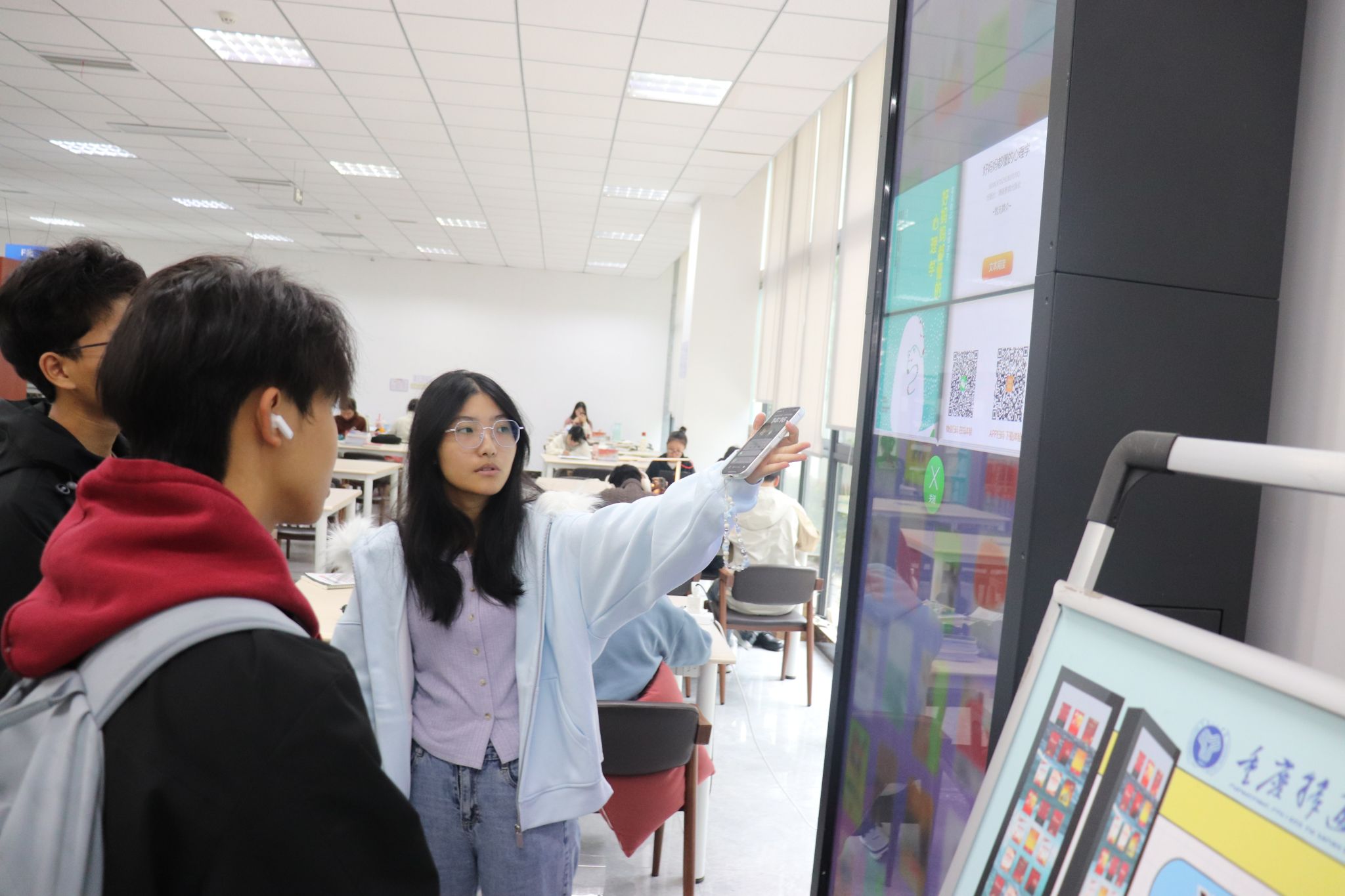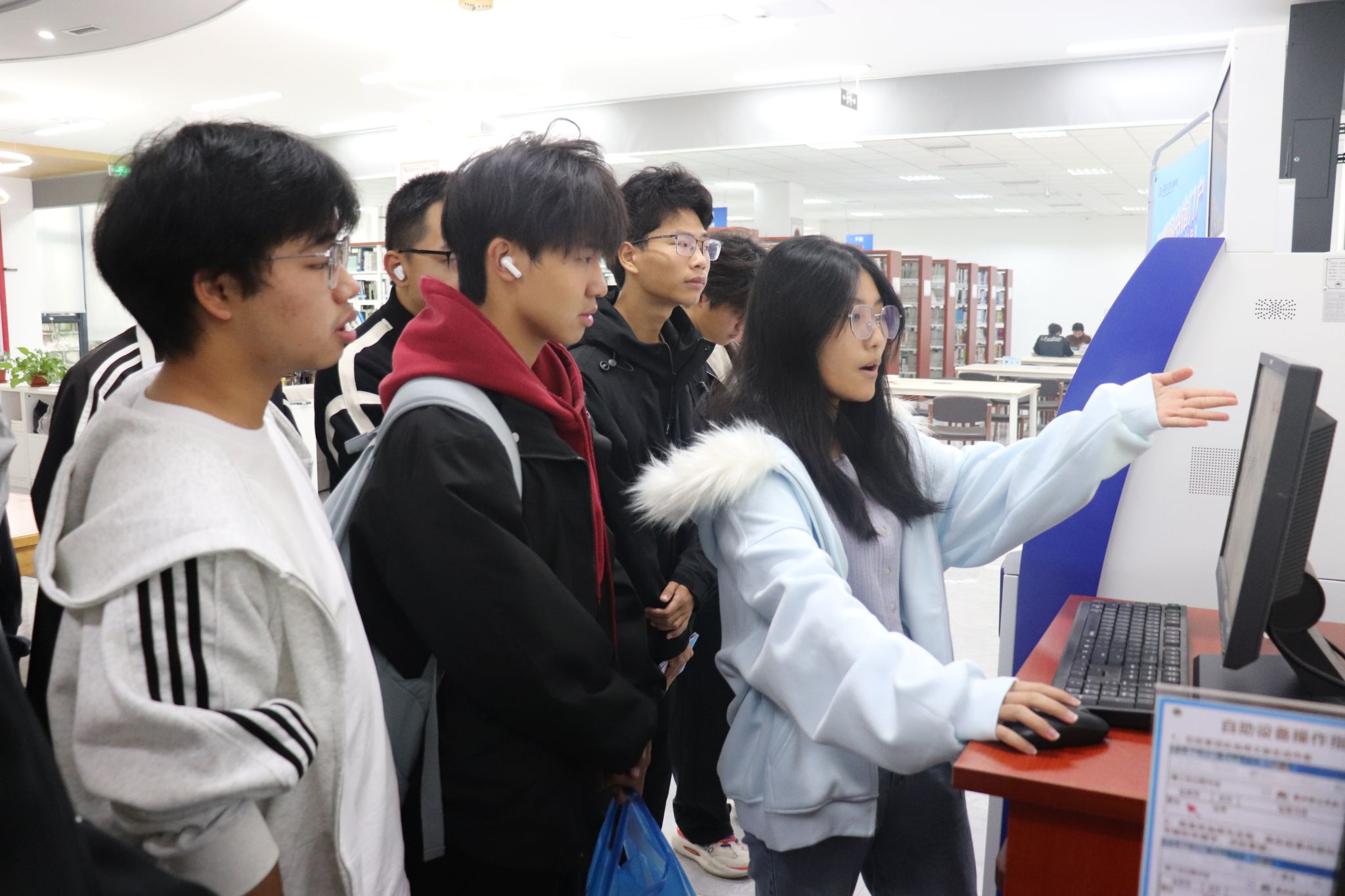 活动期间,图书馆内氛围热烈却井然有序。现场通过“理论讲解+实践操作”双线进行。理论教学环节,老师通过现场演示与讲解结合的方式,系统介绍图书借阅全流程。重点演示自助借还书机的完整操作步骤,从扫码、取书到确认借阅的每一步均进行实操展示。同时,针对图书馆检索系统使用方法,教师通过具体案例演示如何通过关键词组合快速定位目标书籍,并现场解答新生提出的图书借期时长、续借操作流程、逾期处理规则等常见疑问。
