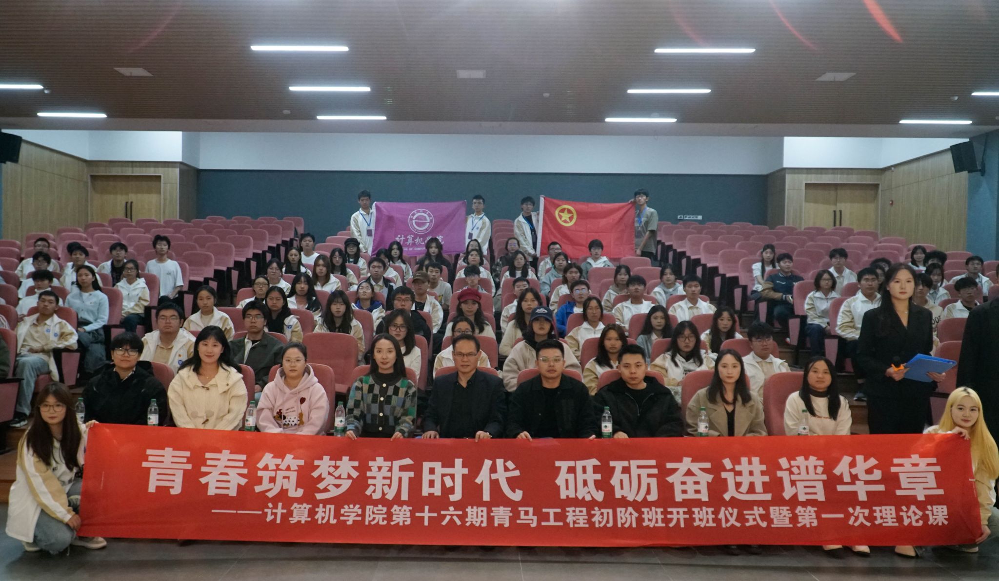 10月31日下午,计算机学院第十六期“青马工程”初阶班开班仪式暨第一次理论宣讲活动在贤者楼131报告厅隆重举行。学院教学副院长林泽金、党总支副书记周俊、团总支书记张雄、学工办主任刘玉凤,以及2024级辅导员雷婷婷、熊海秀、宋瑶与2025级辅导员戴小梅、苏畅、庞越等全体辅导员出席仪式,本期青马初阶班全体新学员齐聚现场,共同开启理论铸魂、实践赋能的成长之旅。