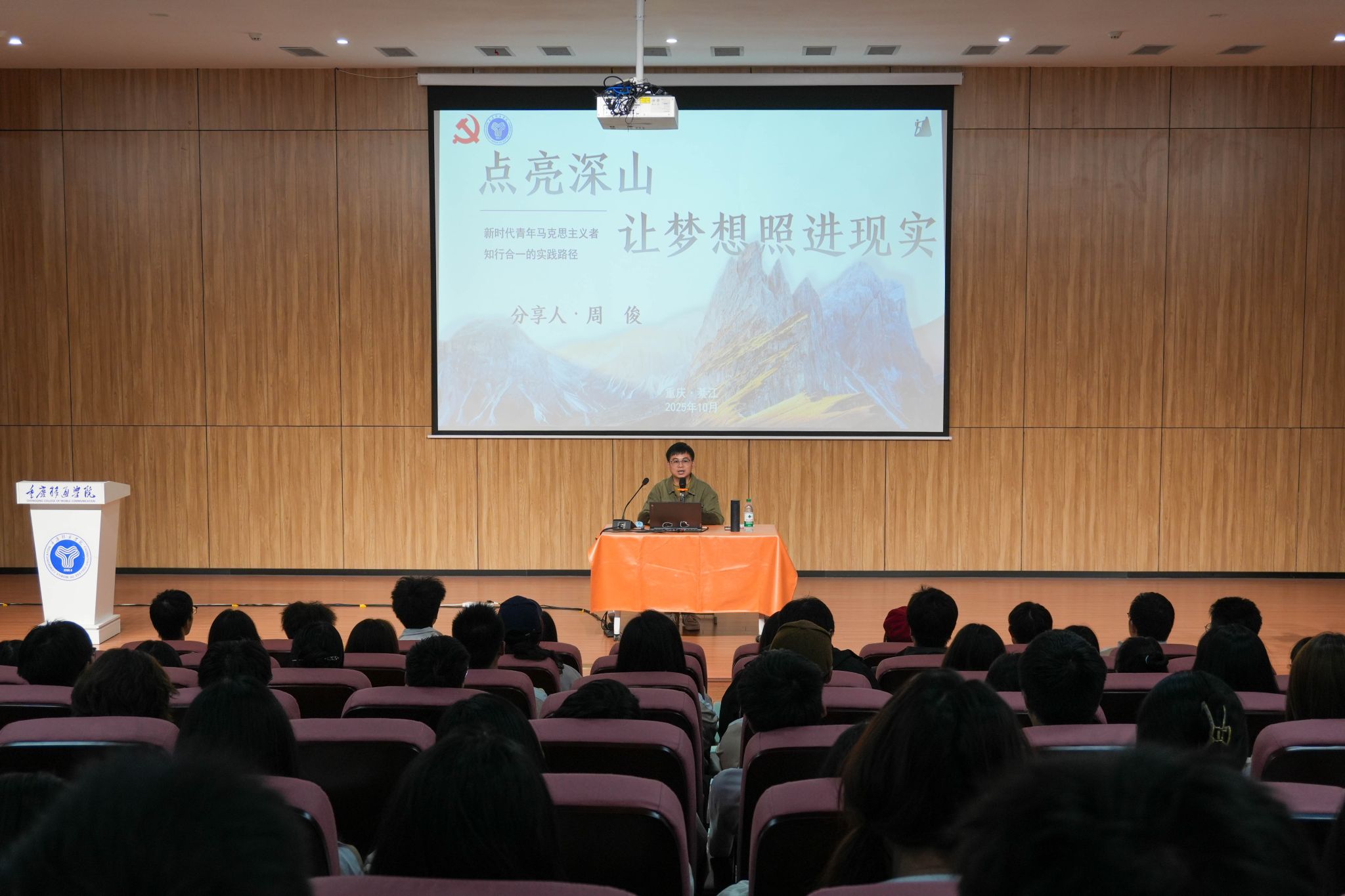 学院党总支副书记周俊以《点亮深山,让梦想照进现实——新时代青年马克思主义者知行合一的实践路径》为题在课堂上,从“两封回信里的奉献精神”“三个故事中的静待花开”切入,通过深山支教、乡村信息化建设等真实案例,解析青年马克思主义者如何将理论信仰转化为服务基层的实践行动。他特别强调:“青马学员既要做‘思想的清醒者’,更要当‘行动的践行者’,就像点亮深山的灯火,让马克思主义的真理光芒照进现实角落。”课程中,周俊书记还结合计算机专业特色,引导学员思考“如何用编程技术助力乡村教育数字化”。