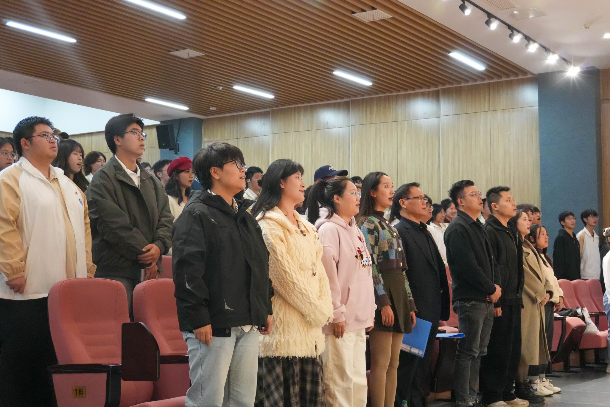 仪式在庄严激昂的《光荣啊,中国共青团》歌声中拉开帷幕。全场学员与参会领导、老师共同起立,嘹亮的歌声回荡在报告厅内。随后,林泽金院长上台致辞。林院长对新学员提出三点期望:一是要锚定“思想根基”,将理论学习与编程实践、技术创新相结合,避免“学用脱节”;二是要扛起“青年责任”,主动参与校园服务、技术志愿等实践活动,用专业能力解决实际问题,三是要永葆“进取姿态”,成长为可堪大用、能担重任的青年马克思主义者。林院长的讲话既立足学院发展实际,又紧扣青年成长需求,让在场学员深受启发。