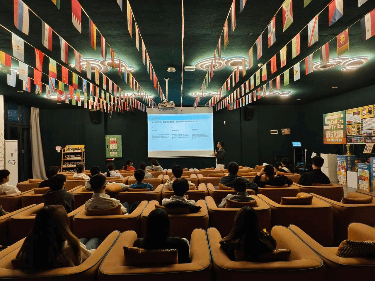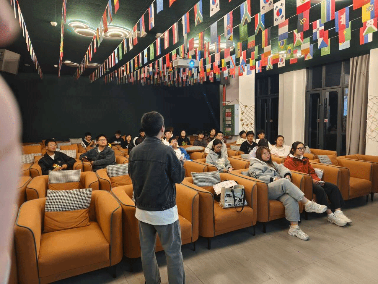 在影音室流转的灯光下,刘老师进一步分享了未来四年的陪伴计划。他表示将充分发挥自身优势,组织读书会、创作工坊、项目头脑风暴等特色活动,并为大家提供学业指导、生涯规划和心理支持。他特别强调:“这里不仅是获取知识的地方,更是大家畅所欲言、勇敢试错的温暖港湾。”