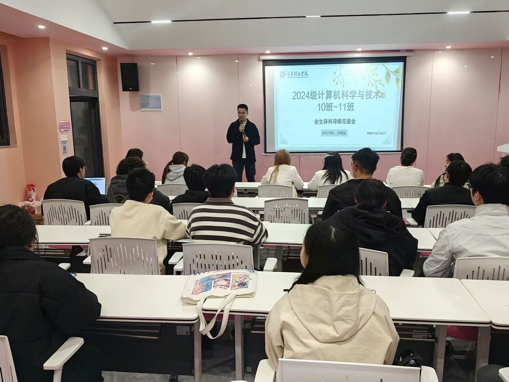 2025年11月11日,计算机学院2024级计算机科学与技术10班-11班的新任全生异科导师周顺航与33名同学在丁山书院白羊座·演讲培训室举行了一场温馨的师生见面会。此次见面会旨在构建良好师生关系,为同学们未来学业生涯的全面发展注入新的活力。