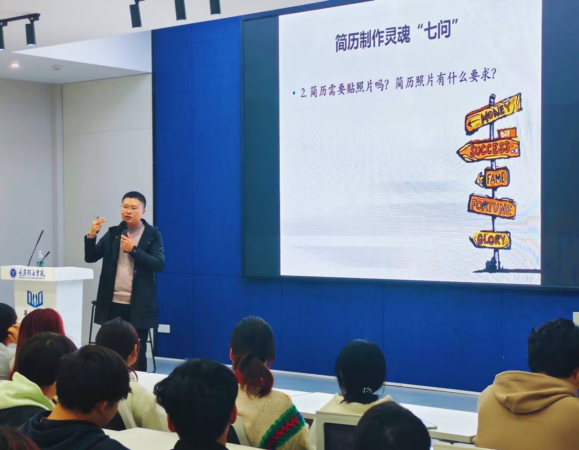2025年11月7日,由綦江校区计算机学院主办的“简历加码优内容,求职吸睛稳通关”简历优化专题讲座在綦河书院观涛·多功能报告厅顺利举行。本次活动聚焦简历撰写与求职技巧,围绕准备工作、避坑指南、内容细节及实用工具等方面展开深入讲解,旨在帮助学生提升简历质量,在求职季脱颖而出。讲座特邀资深求职指导老师李璐担任主讲,为同学们解锁简历优化的核心密码。