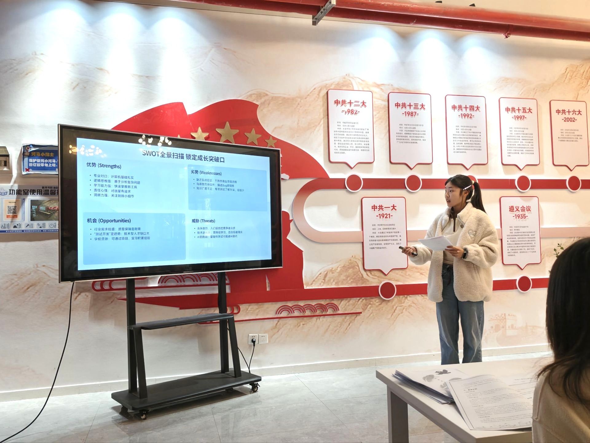 在成长赛道中,参赛选手结合个人生涯发展报告,围绕自我认知、职业定位与发展路径等方面展开系统阐述。同学们深入剖析自身优势与不足,紧密对接行业发展趋势,展现出清晰的职业思考与规划能力。其职业意向覆盖新媒体运营、前端开发等多个前沿领域,充分彰显了青年学子对未来的积极探索与多元追求。评委就规划内容进行针对性提问,指出其中不足,并提出切实可行的改进建议,助力学生完善职业发展蓝图。