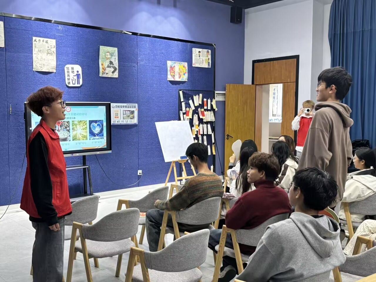 活动伊始,主持人为参与者带来了一场生动的“立冬文化小讲座”,从节气的天文意义到南北习俗差异,再到饺子作为情感载体的文化演变,让大家加深了对传统节气的理解。随后进行的“食材争夺赛”将气氛推向高潮。“飞花令”游戏中,同学们围绕“冬”“饺”“暖”“情”等关键字吟诗接句,妙语连珠;“看emoji猜成语”环节则笑声不断,各组争分夺秒,竞猜与立冬、美食、公益相关的趣味成语。