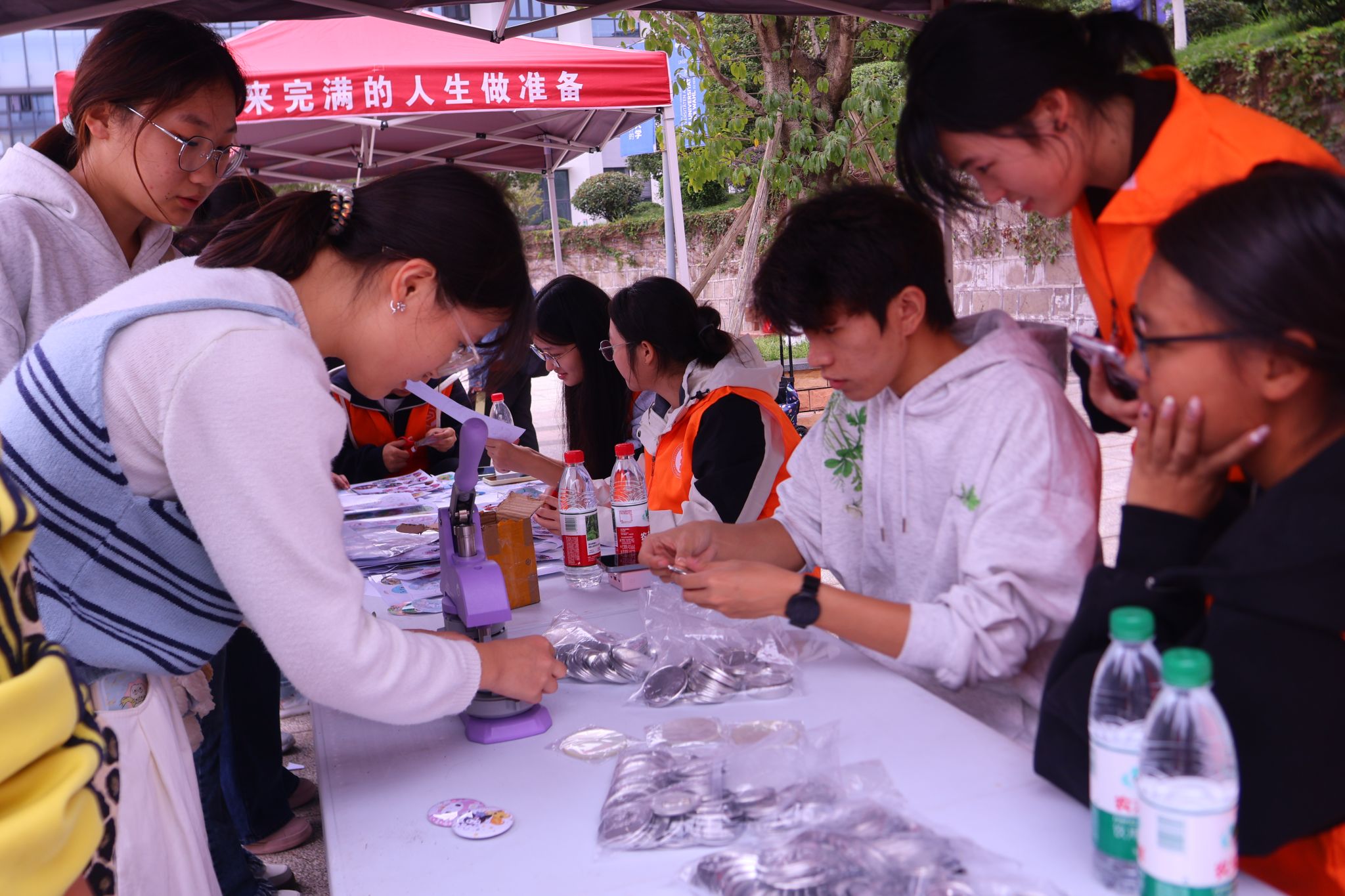 活动现场,12个特色体验站依次排开,各支队结合专业优势亮出看家本领。“芯”愿能源徽章制作区前,同学们在空白徽章上描绘未来科技图景,写下对小朋友的暖心寄语,经志愿者现场压制,一枚枚独一无二的徽章新鲜出炉;急救技能冒险岛内,大家围着假人模型认真学习心肺复苏和包扎技巧,在志愿者的耐心指导下反复练习,不少同学成功掌握基础急救技能,收获定制钥匙扣。