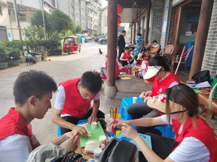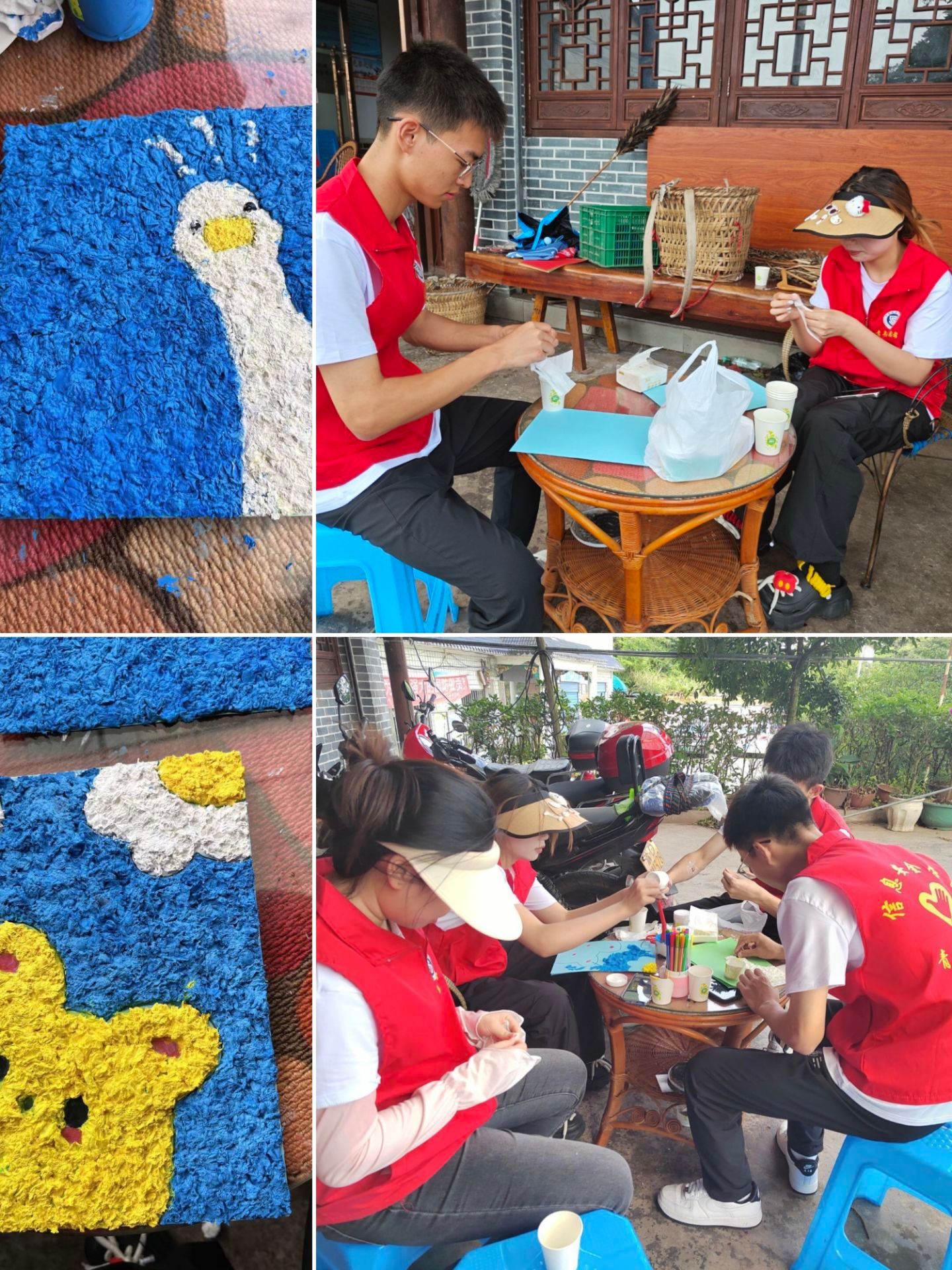 新农村就业基地中,在领队老师的指导下,大家学习了纸浆画。志愿者们进行纸浆搅拌、调配,色彩的选择与搭配,每一步都充满了探索的乐趣和创造的激情。他们有的作品以乡村风光为主题,勾勒出绿水青山的宁静与美好;有的则以抽象艺术为灵感,展现出青春的活力与不羁。每一幅作品都是志愿者们对乡村文化的独特理解和深情表达,也是他们对传统手工艺的一次致敬与创新。