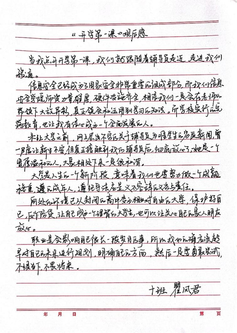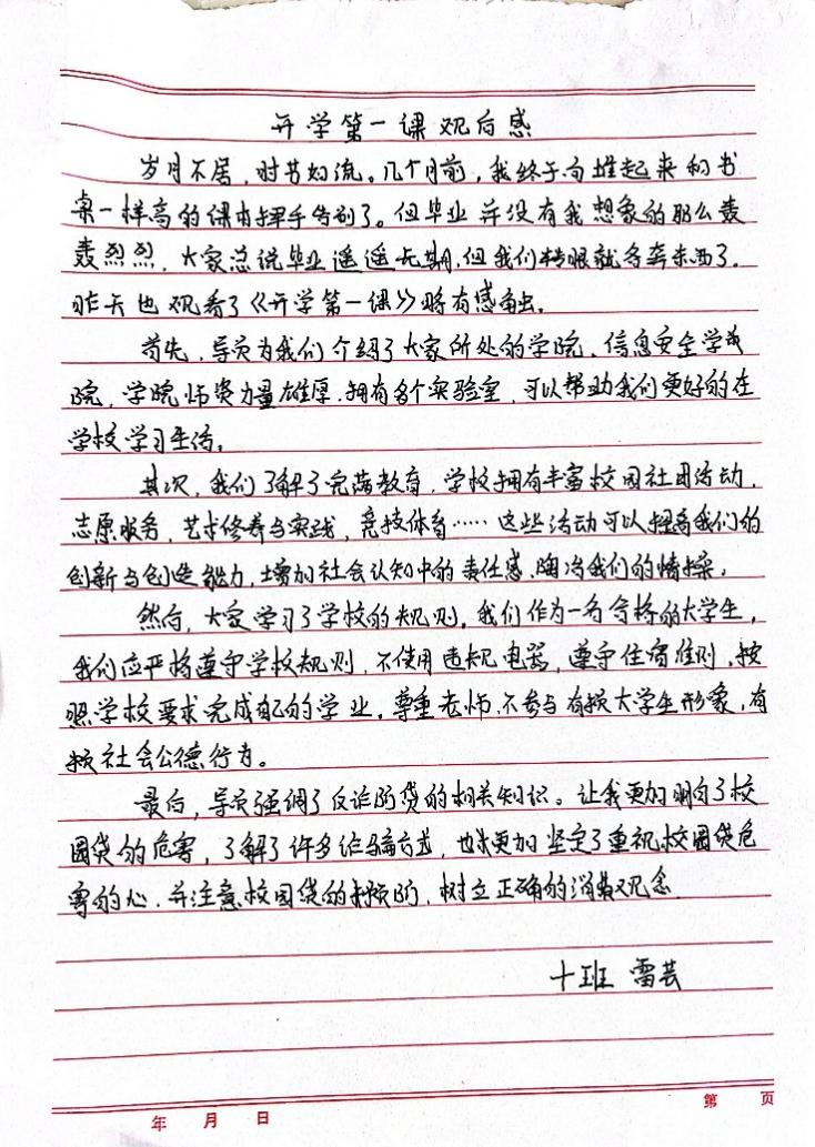 最后,各班辅导员为了防止同学们被网络诈骗,细心介绍了诈骗的一些方式和应对措施,并且也让同学们对自己的未来做了一个规划,提前拟定自己的毕业去向。学生对第一节课也有自己的见解,让我们来“聆听”他们的心声。