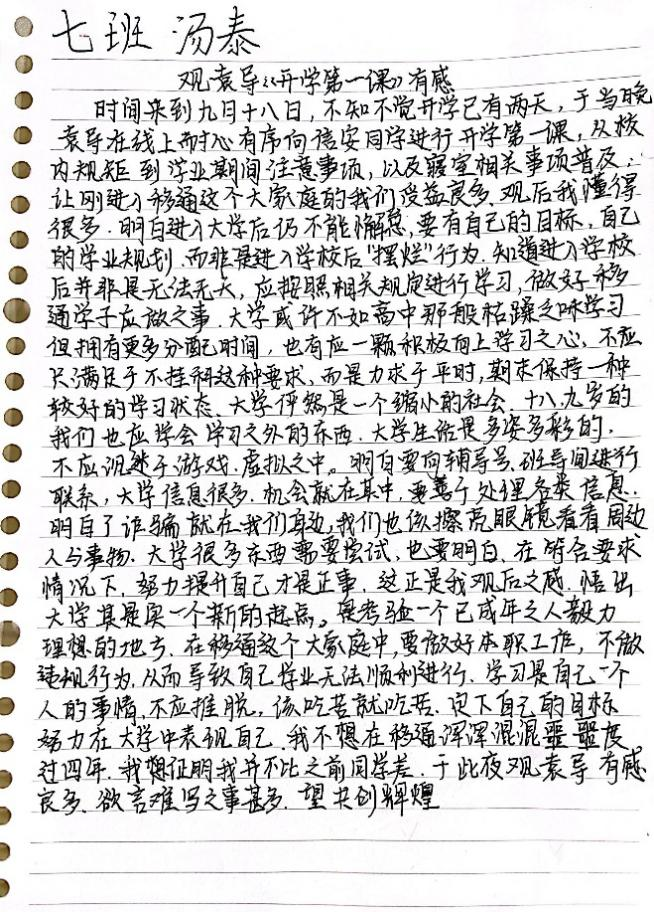 这次开学第一课,正式开启了新生大学的学习长途,对学生良好习惯的养成和安全意识的提高起到了重要作用,同时也为学生的校园生活安定奠定了坚实基础。