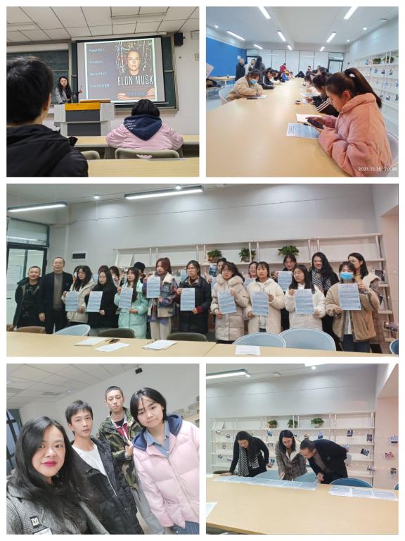来自外语学院的朱陶老师结合自己专业与书院合办的笔墨挥动之英语书法大赛第二课堂活动,积极组织学生参加,以英文书法为契机,引导同学们感受书法之美,英语之美。同时,朱老师也组织学生们开展了大咖阅读和谈话谈心活动,选择《埃隆马斯克---硅谷的钢铁侠》这本书作为分享的书目。在分享会上,朱老师先展示了这本书的主要内容,介绍了马斯克旗下著名的几家公司,并提出远见(vision) 为马斯克最另人佩服的天赋。同学们以小便签的方式写下了自己的对这本书和对这位商界传奇人物的感想。通过谈话谈心活动,了解学生们的心理状态、需求和疑惑,给同学们提供学习上的建议或心理上的健康辅导,为缺乏自信或者心思敏感的学生及时给予关爱和援助,帮助他们驱赶自卑心理、建立自信,创造条件让他们感受到自己的重要性,从而慢慢地增强自信心,培养健全的人格和心理,使他们成为具有强大心理承受能力和全面综合素质的人才,以适应现代社会的激烈竞争和生存需要。