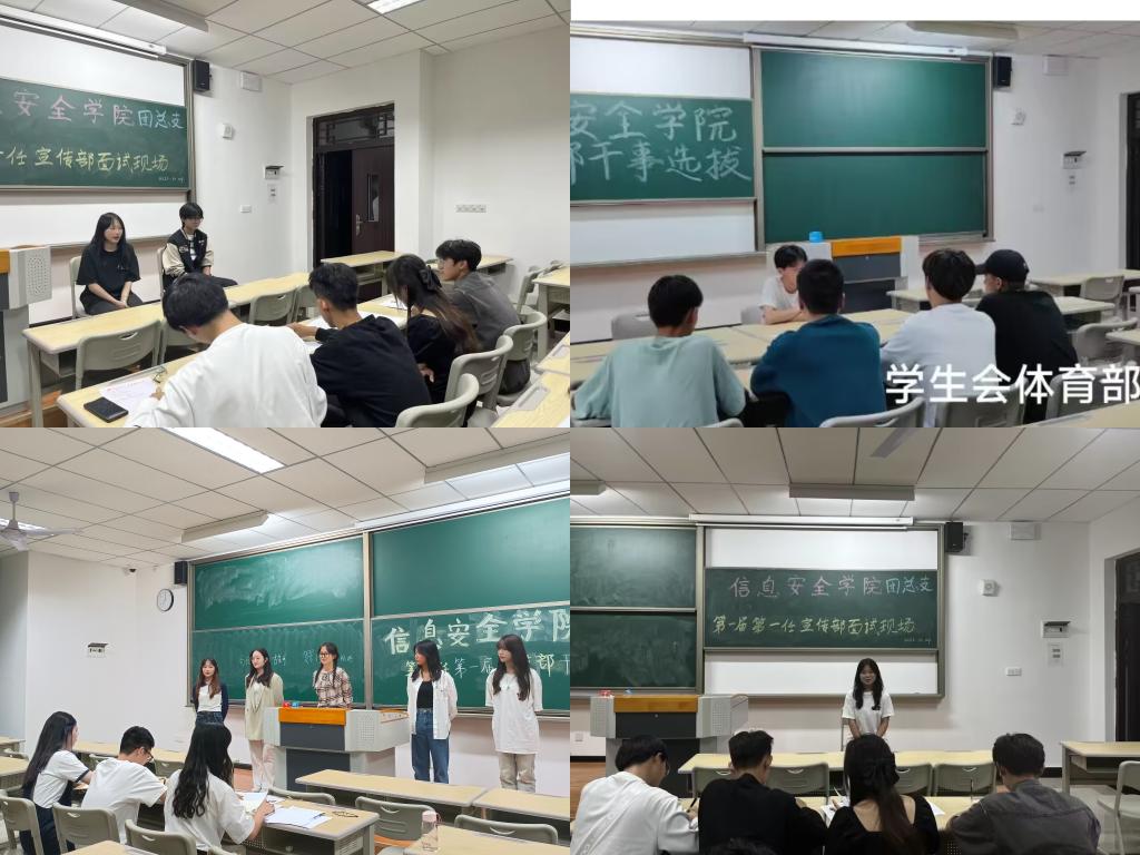 面试中同学们侃侃而谈,自信简述着自己的信息以及优点特长,将自己最优秀的一面展现出来,争取着这一次选拔的名额,而各指导老师及部长则细心聆听同学们的发言,观察他们的表现,详细做好记录,并公正的进行评定选拔。