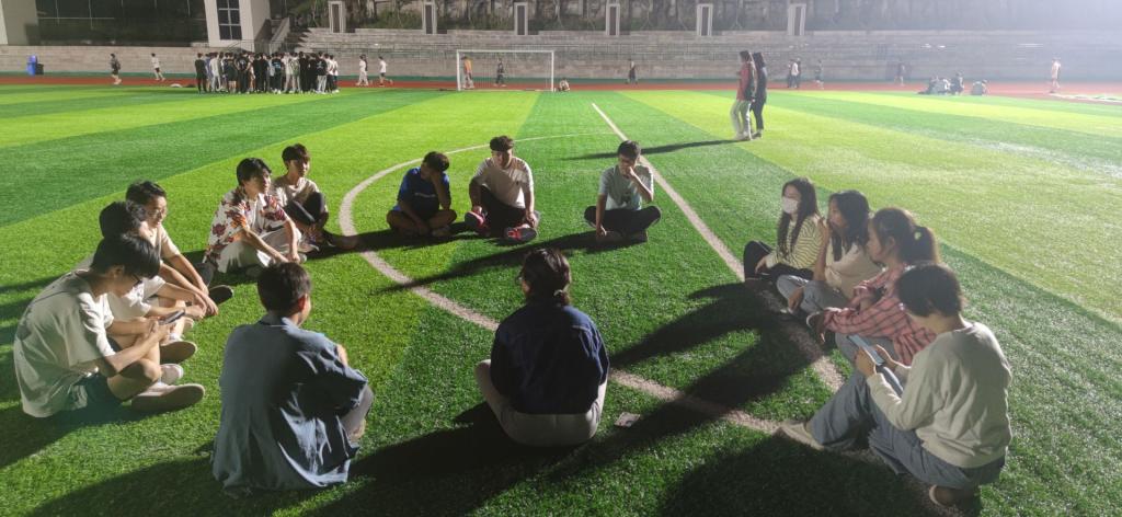 9月26日晚上,庞文华老师与十多位同学在操场上进行了新学期的首次见面。大家围坐在一起,聊着各自的暑假生活,期待着不一样的大二。一个假期过去,有的暗自提高自己的编程技术,有的化身为羽毛球小子,有的边学吉他、边学英语,有的在假期体验了兼职的不易……而在对未来或清晰或模糊的想象中,庞文华老师希望能与大家一块做好手边的事,等待着属于自己的机会,并且设想了本学期的大咖阅读活动和英语四级备考活动。