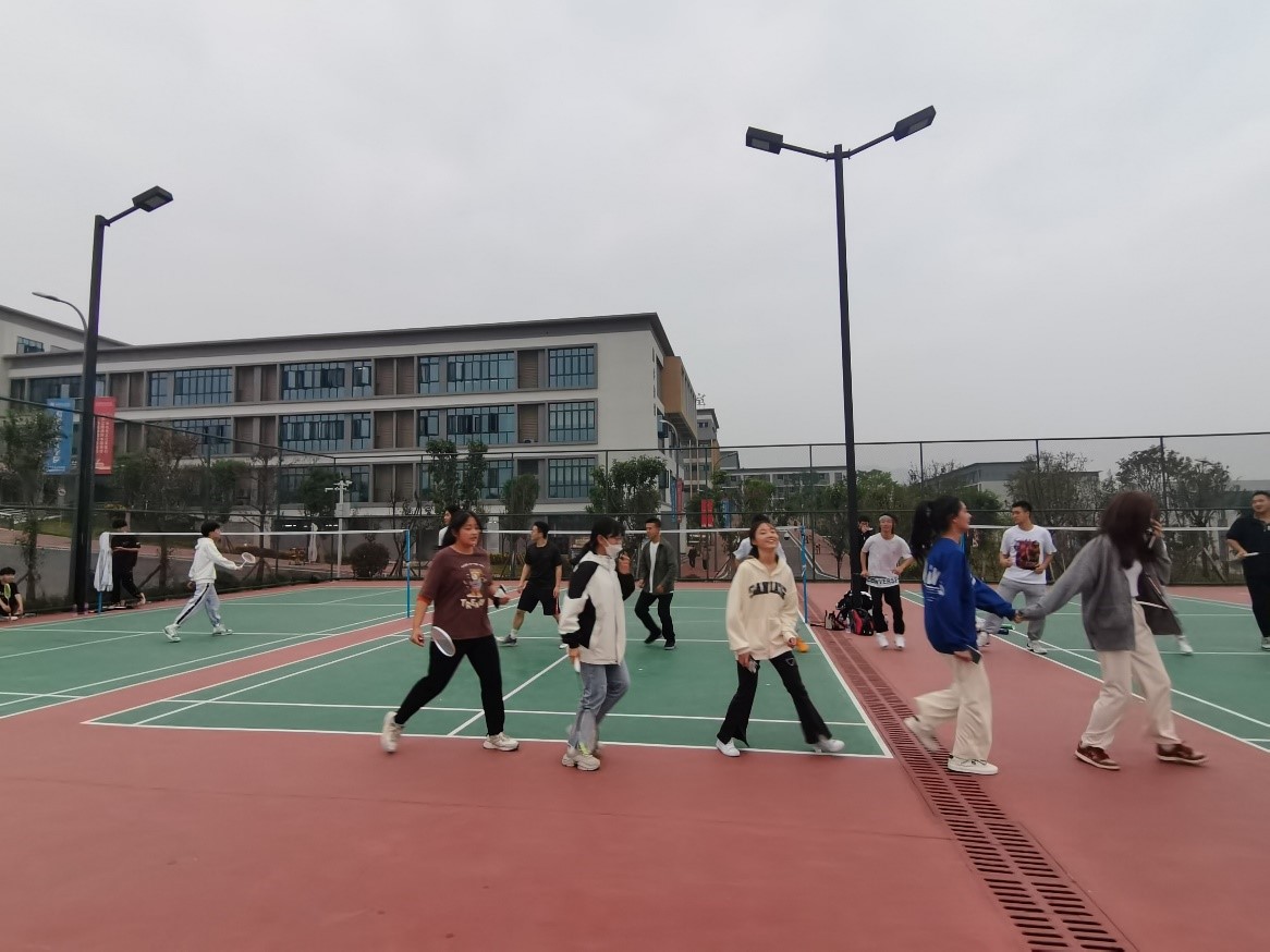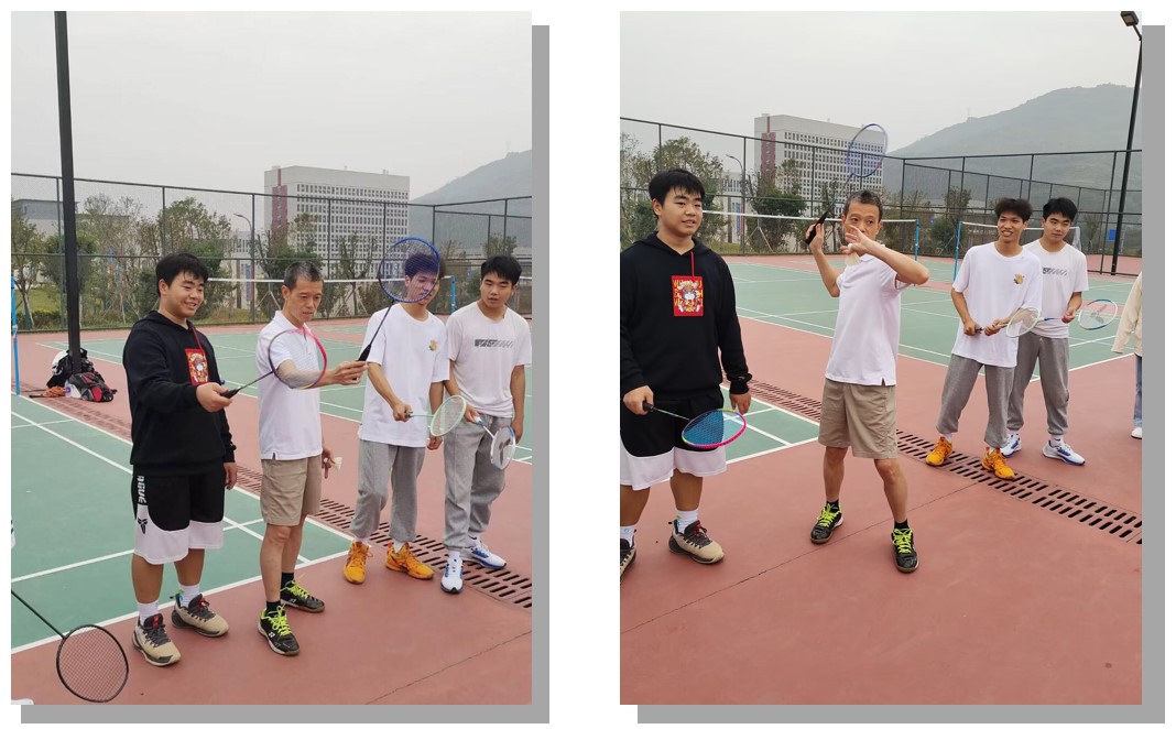在活动中,徐晓导师首先教给同学们打羽毛球的正确步伐与姿势,随后以单人、双人对打羽毛球的方式使得大家在实践中掌握方法与技巧。同学们脸上都洋溢着欢快的笑容,迈着轻快的步伐,先是按照徐老师的指导和示范,在操场上排成几列,训练羽毛球基本滑步的步伐,而后便是分成若干场地,积极地挥舞球拍,打着羽毛球。场面十分欢乐,欢声笑语同锻炼,强身健体添活力,仿佛此刻青春在歌唱,生命在欢腾!