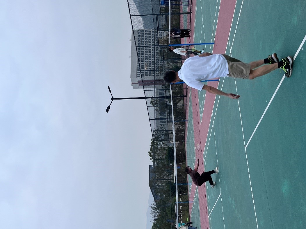 老师示范讲解完毕,同学们就迫不及待地分成若干小组,分别前往不同的场地,以单打、双打、混双等各种方式,展开训练和比赛。只见大家在球场上来回奔跑,挥拍跳跃,欢声笑语中一派生龙活虎的景象,好不热闹。而徐晓导师则在各个场地间来回巡视穿梭,不停地给同学们一些指点和示范。
