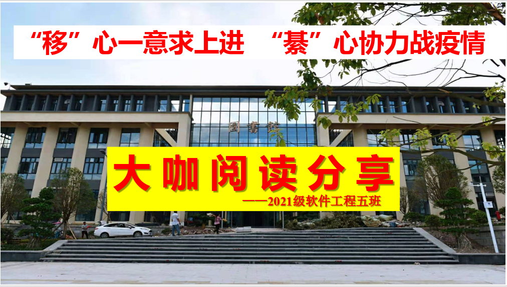 疫情虽打破了许多原有的计划,但学习是永远不会停止的事情。同学们奔向知识的脚步越加坚定,拥抱知识的热情日益浓厚。11月16日,在重庆人民全力抗击疫情的关键时刻,信息学院异科导师王郡老师带领21级软件工程五班三十二名同学通过腾讯会议开展了“移”心一意求上进 “綦”心协力战疫情——21级软件工程五班大咖阅读分享活动,以文字、以书籍抒发心中的情感与敬佩。