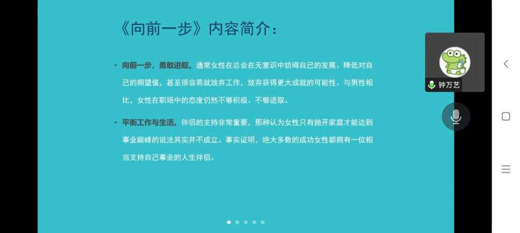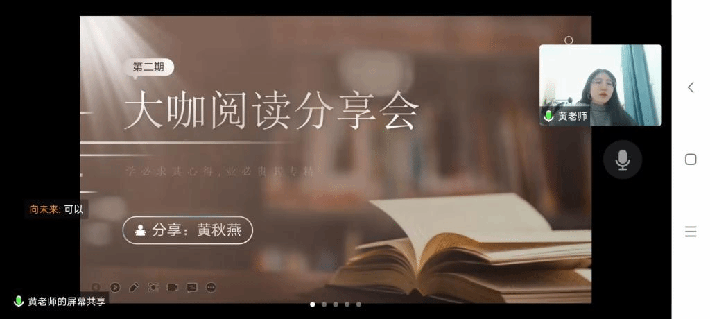 开卷有益,最是书香能致远。为营造“爱读书、读好书、善读书”浓厚氛围,引导学生养成阅读习惯,2022年12月2日,异科导师卫峥妮组织信安学院2022级35名同学,以线上形式开展了大咖阅读活动。公共基础教学思政教学黄秋艳老师受邀参加本次会议。