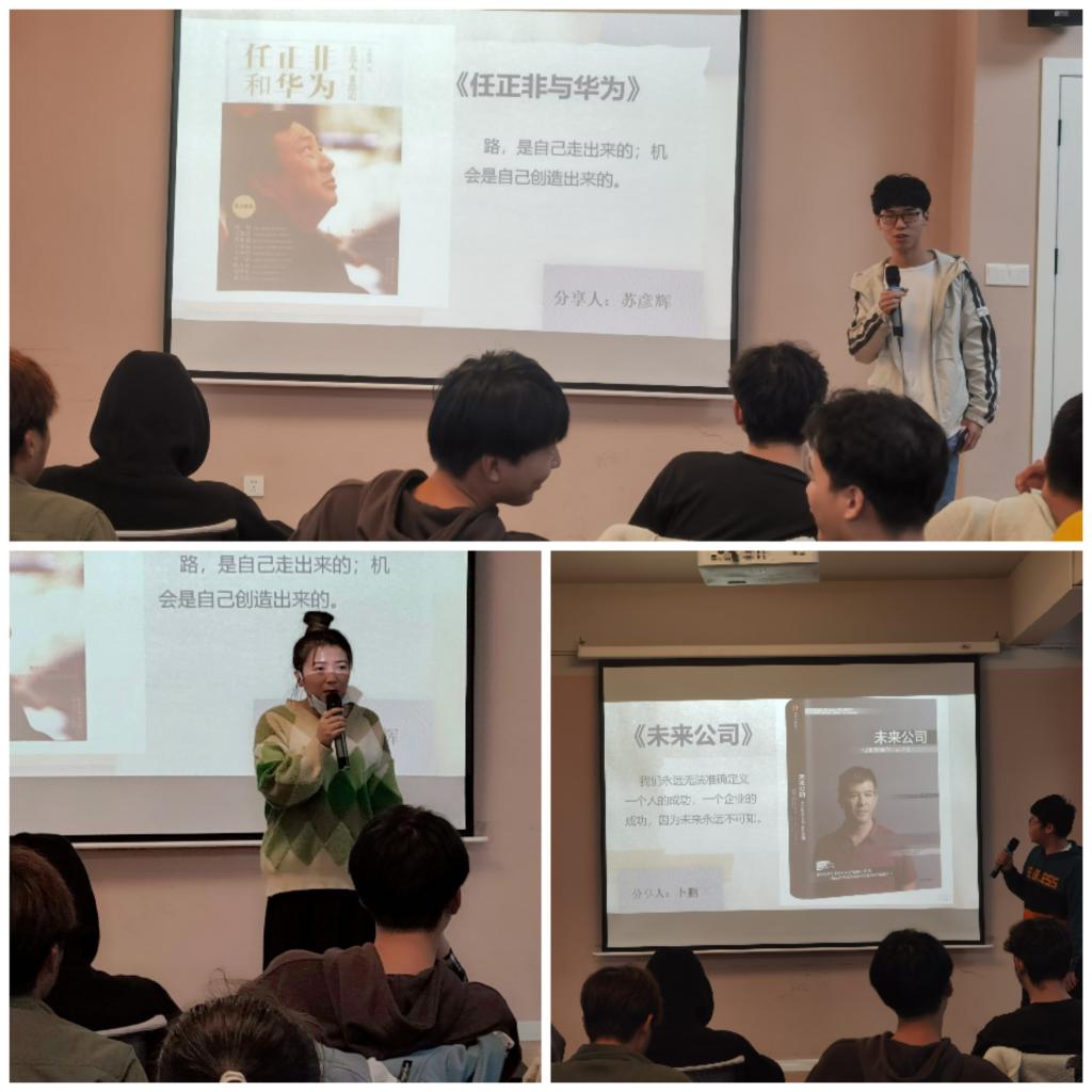 2022年11月26号,信息安全学院软件工程2班的异科生导师叶彩虹老师组织同学开展了本学期的大咖阅读·分享交流会,本次会议由班长吕红锦全程主持,同学王金水、郝思蕗、任工旗、苏彦辉、卜鹏分别为大家分享《王健林与大连万达》、《史蒂夫•乔布斯传》、《支付战争》、《任正非与华为》、《未来公司》,最后以叶彩虹老师的总结发言作为结尾。