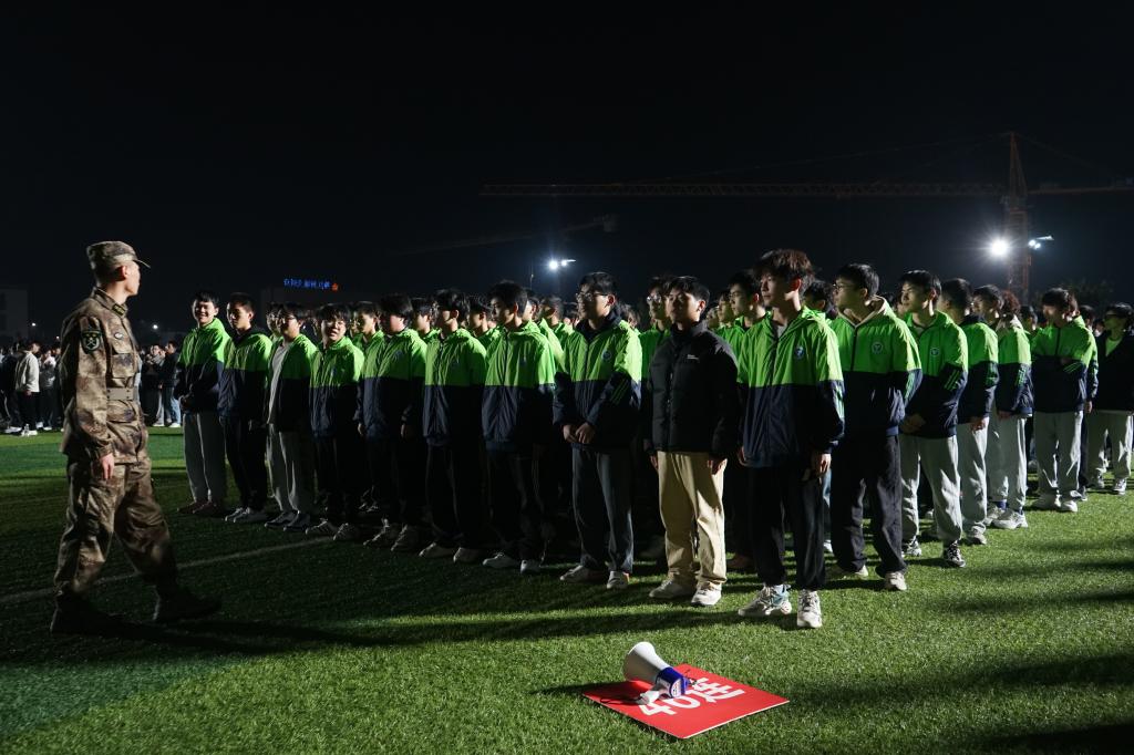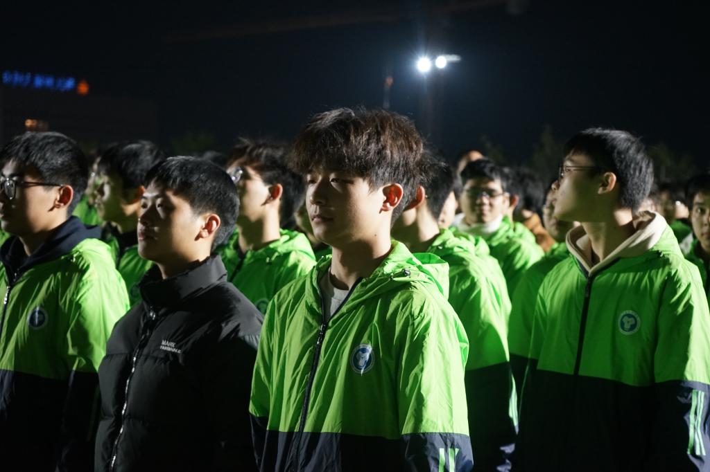 伴随夜幕的降临,信安的学子们络绎不绝的步入校运动场,他们寻找到自己的位置,经过短暂的调整,他们身着校服、整装待发、立正于队伍之中,以坚定的目光彰显直面军训的勇气与担当,以坚挺的身躯磨砺自身坚毅的意识。