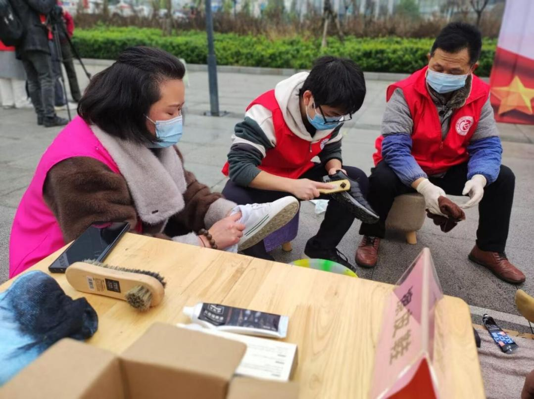 志愿活动现场更是设有生活服务区。志愿者们帮助有需要的居民打磨菜刀,擦拭皮鞋,熨衣服,拍照纪念,希望为居民们分担一些事务,面对一系列繁琐甚至是初次尝试的工作,志愿者们尽心尽力,乐在其中,为居民们提供帮助,为弘扬“雷锋精神”贡献出属于自己的力量。
