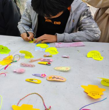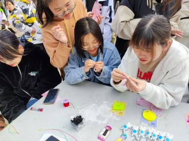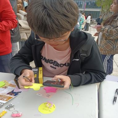 活动中,女生们灵活的手指穿梭在彩色的丝线之间。会编织的女生在短短几分钟的时间里完成了手链的编织,不会编织手链的女生也请教身边的人或者利用网络搜索教程。五彩的线在女生们手中变成了一根根漂亮的手链和戒指,女生们用心编织的手链和戒指以及用心写的心愿便利贴在阳光的辉映下变得格外耀眼。她们的脸上在整个过程中洋溢着青春的笑容,感染着周围的每一个人。