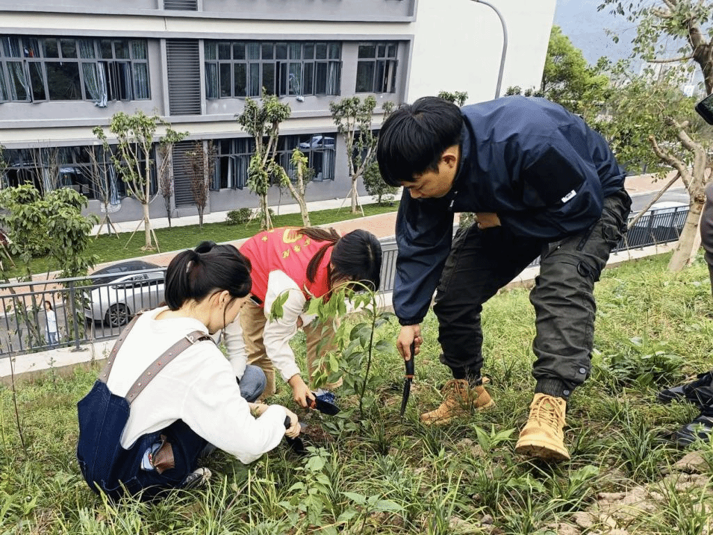 活动开始后,志愿者们开始栽种准备好的树苗,这些都是适合綦江气候的小树苗。本次吸引了许多的同学,大家认真学习,不畏辛苦,彼此合作完成树苗的栽种,体会到种植树苗的不易和亲自栽种树苗的快乐,现场氛围和谐热闹,志愿者可以为自己的种的小树命名,为自己种的树赋予更多的意义。活动结束后,参与植树活动的志愿者与各位老师以及工作人员们合影留恋。