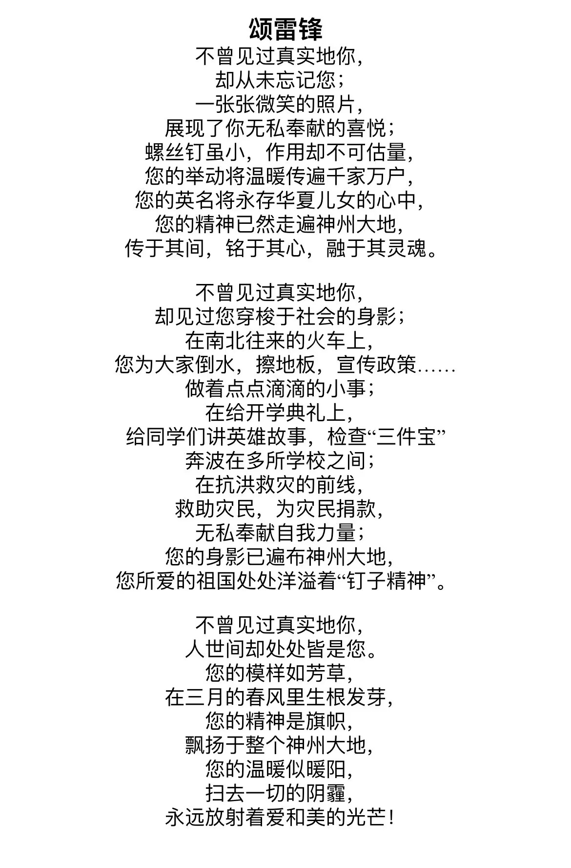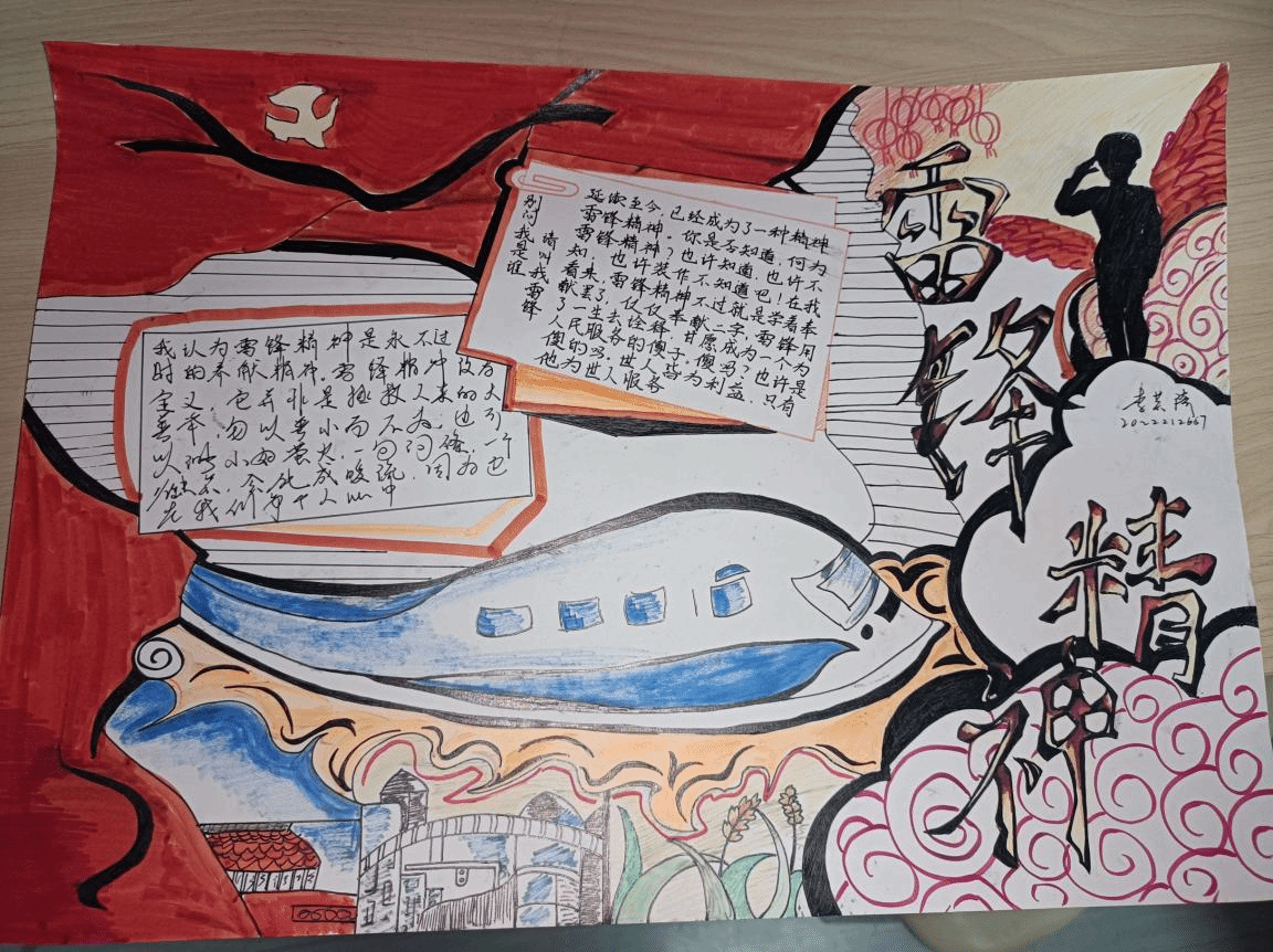 四十余名同学们以“弘扬雷锋精神,奉献青春力量”为主题,结合当下社会环境与学院特色,通过绘画手抄报、设计海报、诗歌、拍摄视频等方式创作文艺作品,以自己的方式弘扬雷锋精神。有李英琦同学雷锋精神手抄报,有钟佳宏同学的诗歌——颂雷锋,也有胡金明同学创作视频《起锋了》(改编自歌曲《起风了》),朴实的话语唱出的是同学们对雷锋的敬佩与怀念,雷锋虽牺牲了,但是他甘做螺丝钉的精神永远值得我们学习和弘扬。