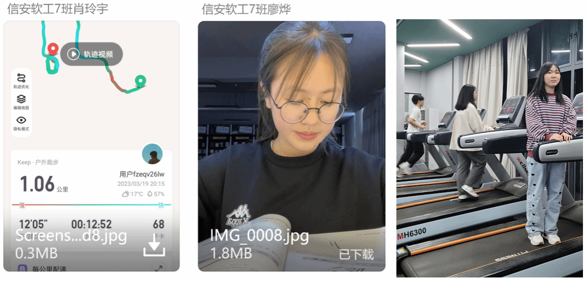 体育活动同样如此,老师要求的是每周至少三次体育运动锻炼的打卡拍照。目的是希望同学们尽量的在课余时间从事户外锻炼,强健身体增强交流,培养团队协作意识。同时,尽量避免长时间待在寝室,远离游戏刷剧刷短视频,以免耗费精力,浪费大好时间。