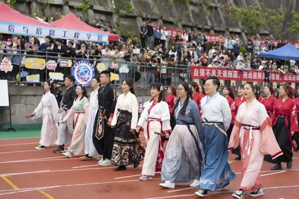 2023年4月23日清晨,伴着春天的细雨,重庆移通学院綦江校区运动会开幕式在操场如约进行,信息安全学院积极参与其中,在经过一个多月辛勤排演后,为本次运动会开幕式献上了精彩的表演。