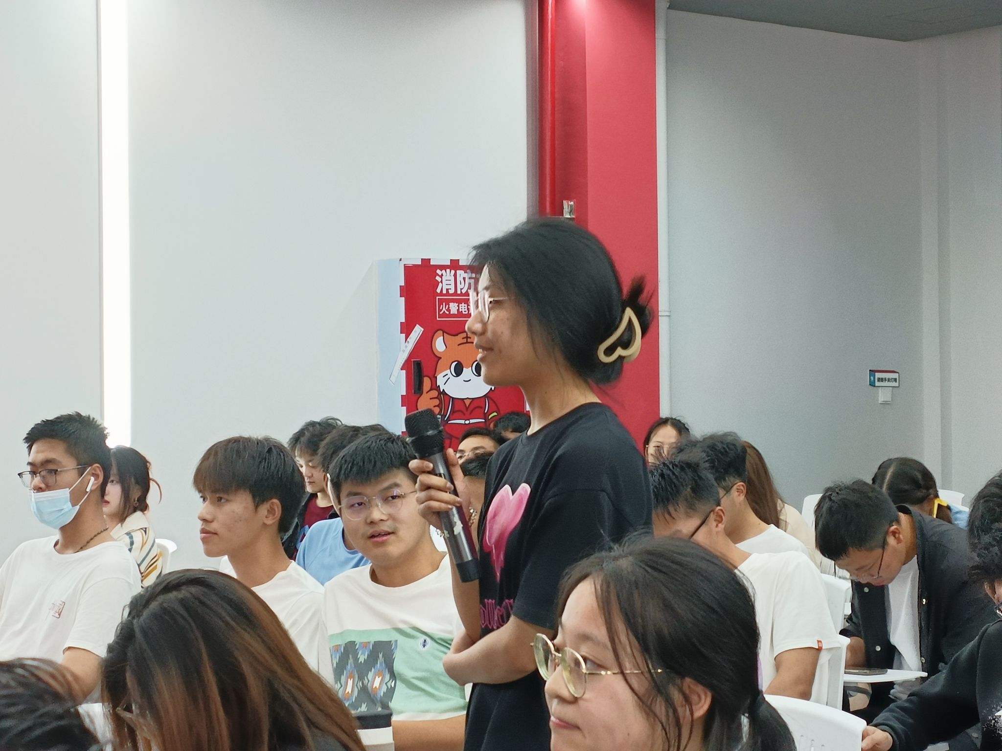 最后,活动参与者对志愿服务活动开展仍存有疑惑的地方进行现场提问。青年志愿者文俊杰和周俞宏同学耐心为提问观众解答,并在最后呼吁更多的同学能够积极参与我院甚至是学校、社会的志愿活动,用自己的青春力量构建更鲜艳的志愿红。