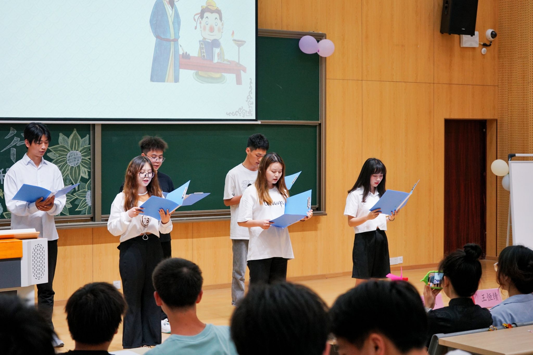 人皆榜样,有样学样。建设良好礼仪还需要找好榜样进行学习,而来自软件工程10班的张镇宁同学和来自软件工程12班的邹志平同学则为我们带来了生动形象的故事小品表演——《张良拜师》和《孔融让梨》,他们用诙谐的语言和有趣的动作表演,现场氛围愈发高涨。