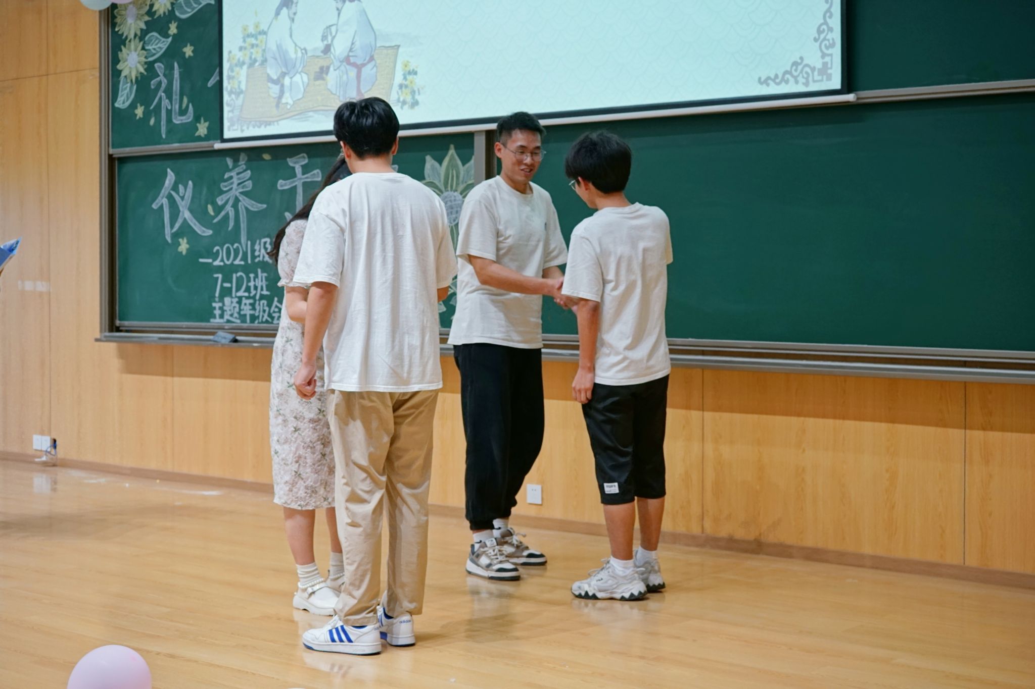 骄阳虽去,余烈犹存,空气中闷热的温度抑制不住同学们的满腔热情,全体200 余位同学参与其中,并有幸邀请到綦河书院刘岩老师、淬炼商学院李俊颖老师、创意写作学院王恒绩老师、大数据与计算机科学学院冉立老师出席。主持人范利宗和汪银同学清澈洪亮的嗓音声声入耳,带领大家开启礼仪之行。