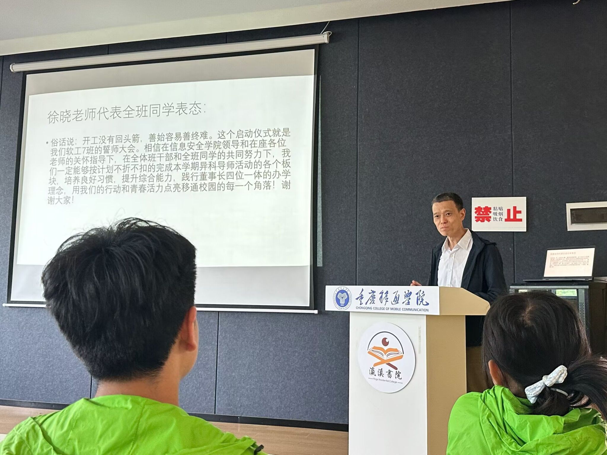 这是一个老师的表态,更是一个班级的庄严承诺,话语间或许并没有激情飞昂,承诺动作或许并不是那么振振有力,但是言语中无不透露出异科导师和全班同学的壮志雄心,无不体现出他们必将坚持到底的魄力。