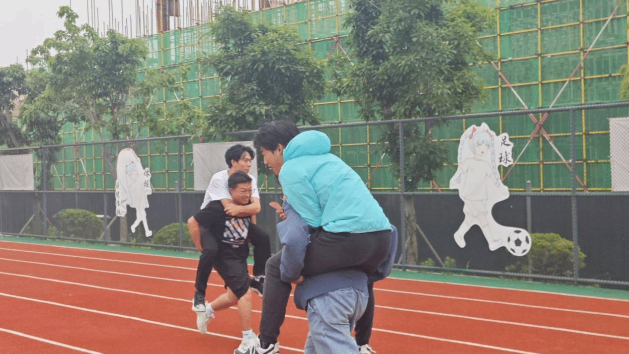 第四个项目——“4×50米背人负重接力赛”,选手们背负自己队伍的伙伴,进行来回奔跑,脚步沉稳矫健,在保障伙伴被平稳地背负后,逐步加快速度。