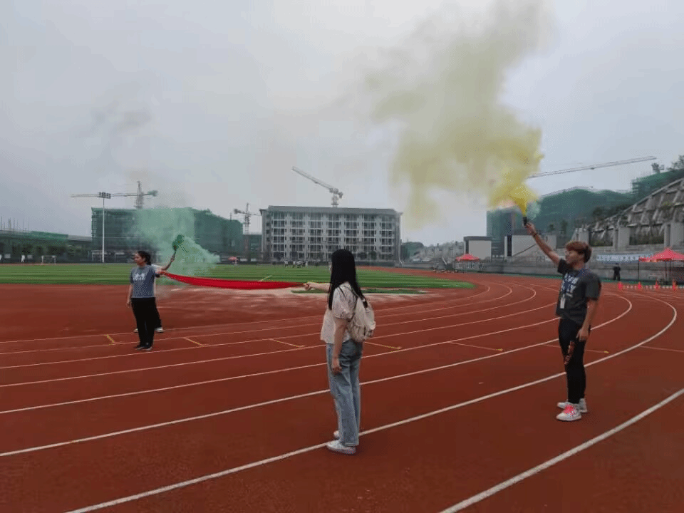随后,发令枪响起,彩色烟雾燃放,学子们竞相冲过起跑线。“青年·无畏惧之最热血”——信息安全学院第一届消防安全技能挑战赛正式拉开帷幕。