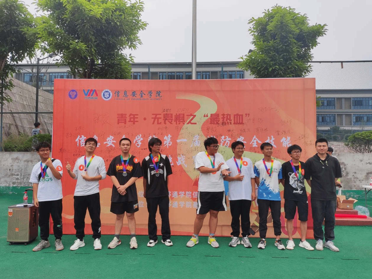 经过角逐与最后用时成绩统计,有五支队伍脱颖而出,在工作人员的宣读下,他们集结于签名墙前,由邹健主任、郭自强老师为他们颁发奖牌。