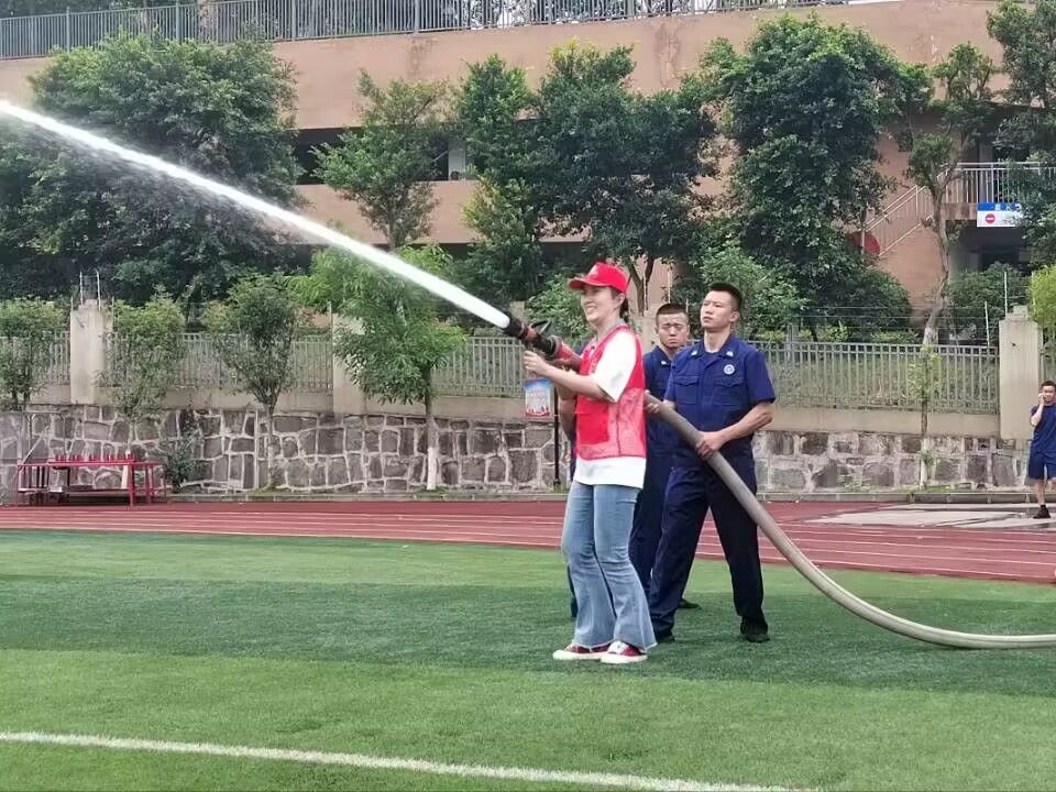 项目体验4——水带出枪,打把实战体验。绿茵场上,消防队员详细为师生们讲解了高压水带的使用方法,并与师生一同进行了水枪打把体验,整个过程充满欢笑,师生与消防队员们去了融融,共同愉快的完成了打把任务。