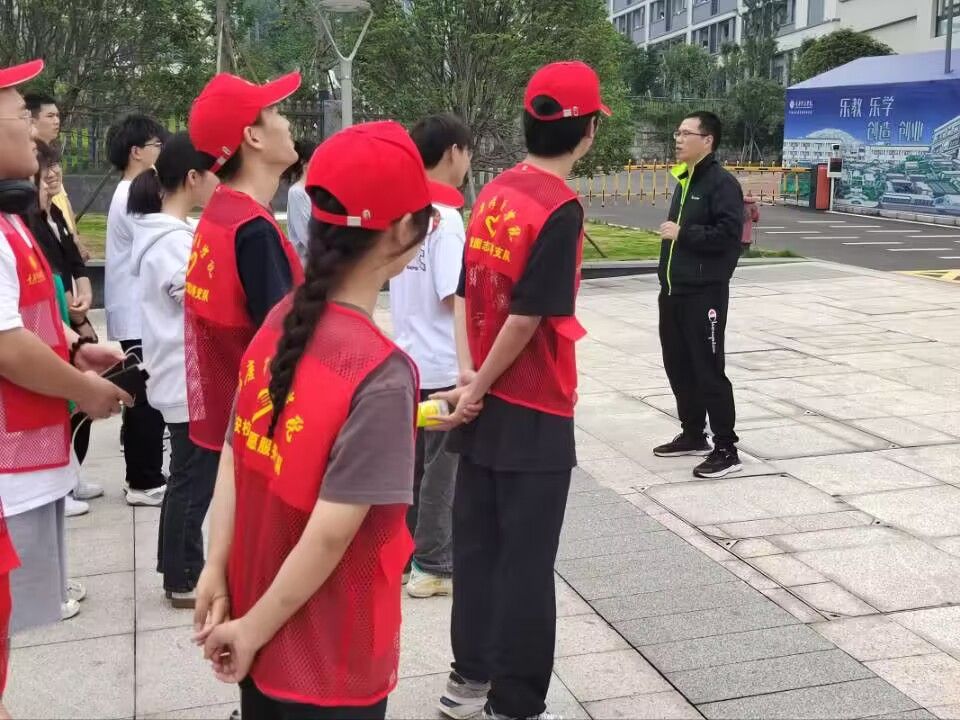 当日14:00,参观学子于綦江校区2号门前集合,他们身着志愿服装,细心聆听活动负责人讲述活动要求和记录,并在号令下整齐地向观摩地进发。