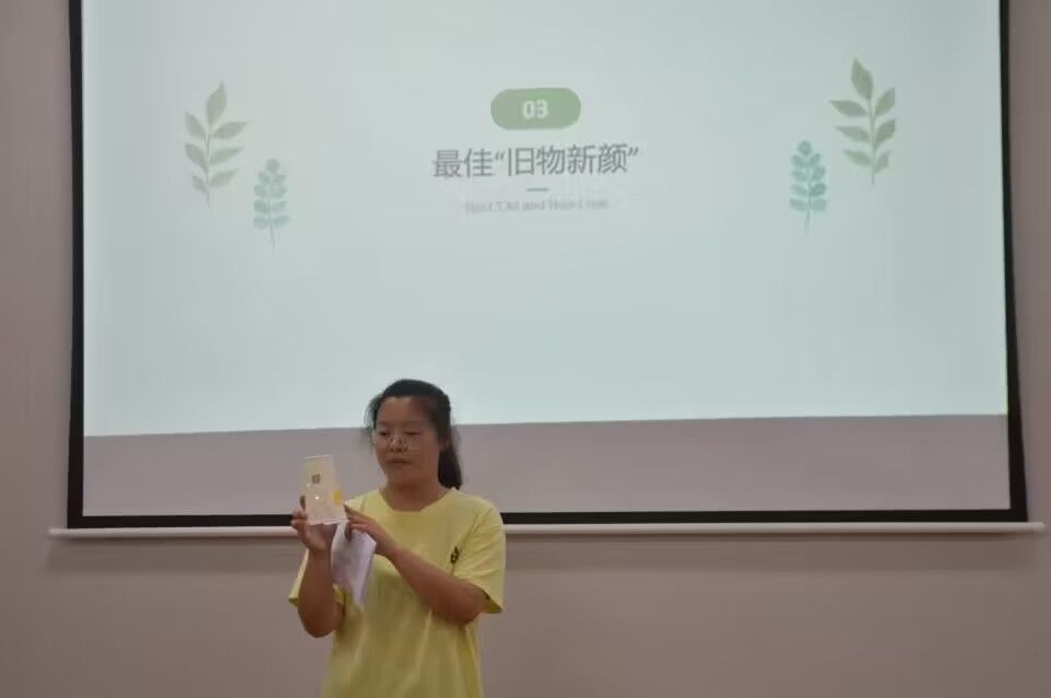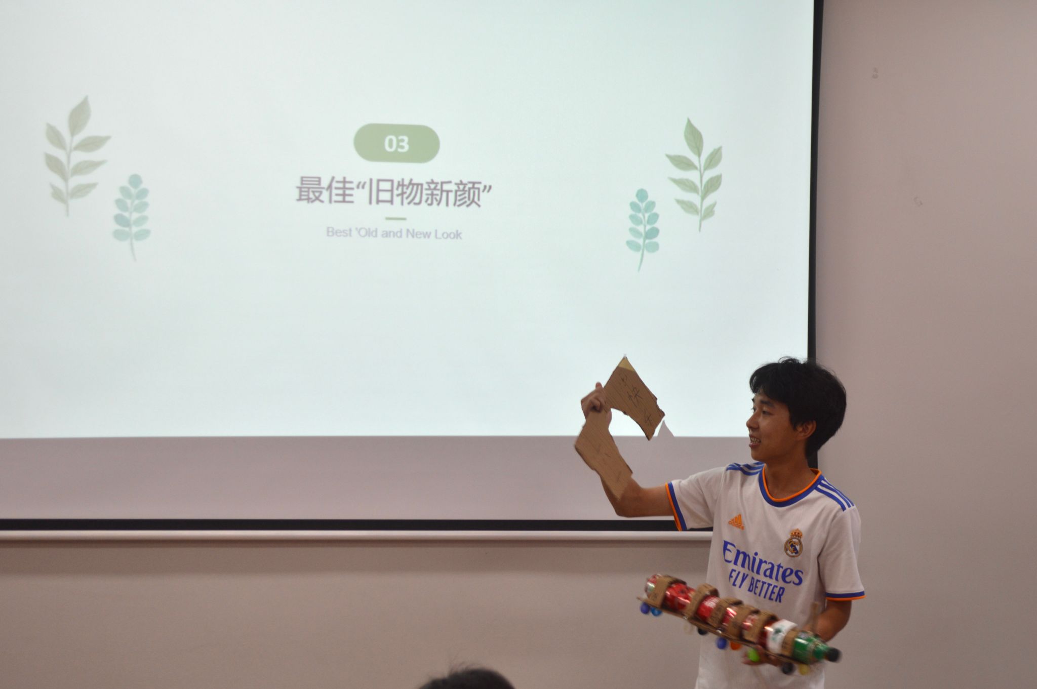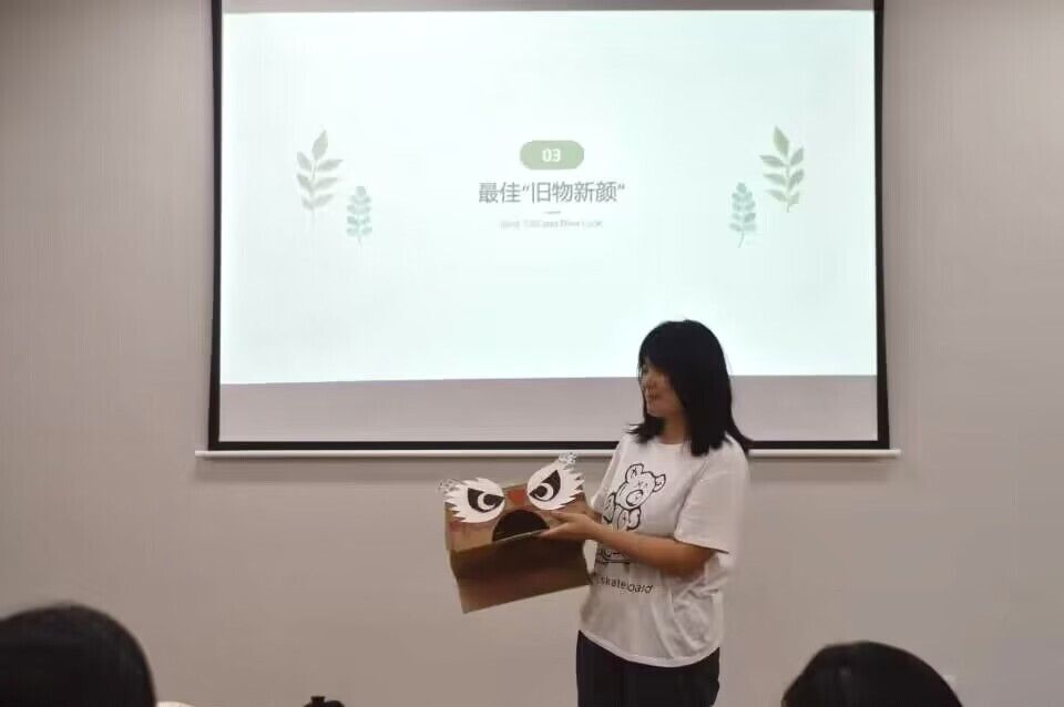 活动开始之初,在主持人的引导下,同学们一起观看了科普变废为宝小知识的短视频,视频中讲解了变废为宝的意义与价值,同时也阐述了同学们该如何去利用身边的废旧资源;看完视频后,主持人引导同学们欣赏了一些简单、有趣、实用的创作成品,同学们也纷纷表达对作品的想法,热闹的氛围弥漫着整个空间,思维与灵感的相互碰撞,都暗示着同学们按捺不住地热情,让我们一起期待同学们是如何将这份热情在作品中发挥到极致。