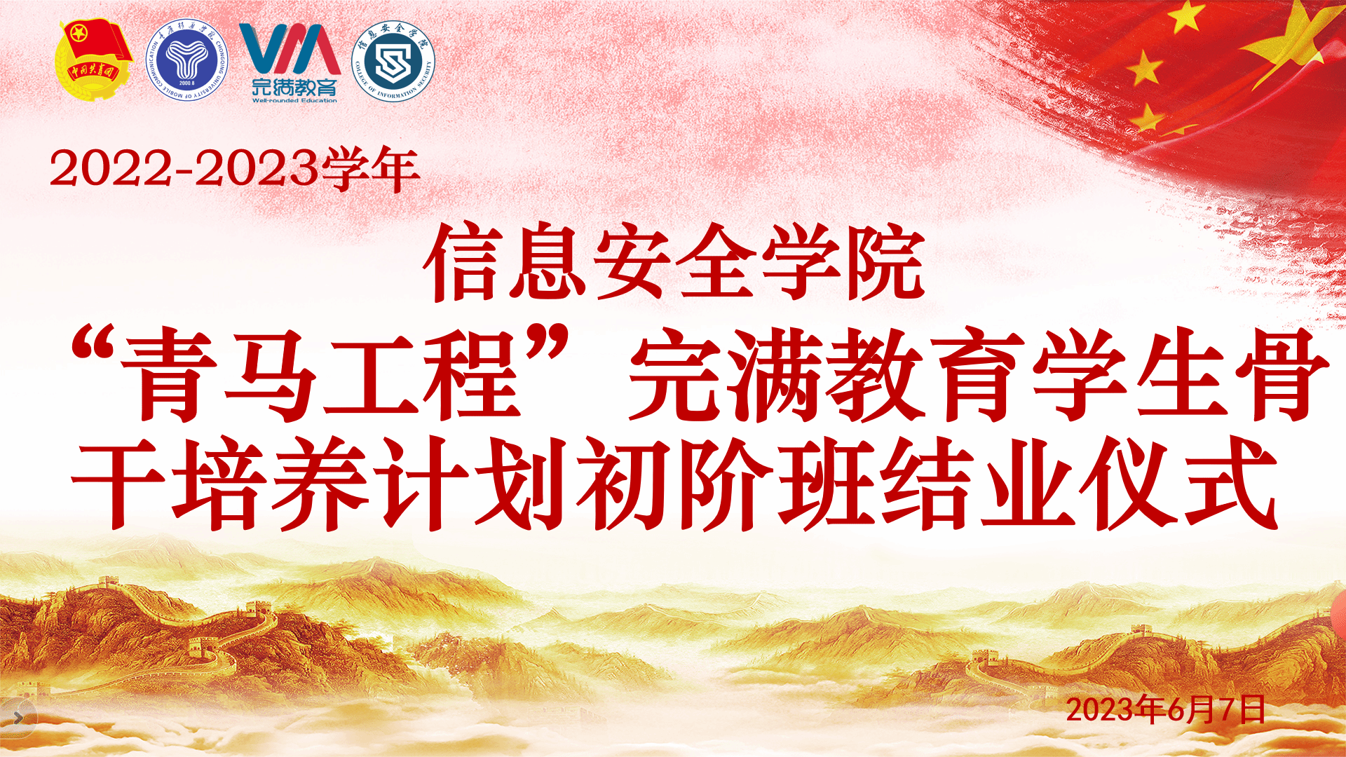 不经一番彻骨寒,哪来梅花扑鼻香。2023年6月7日,第十三期“青马工程”完满教育学生骨干培养计划信息安全学院初阶班结业仪式,于瀛溪书院回声报告厅正式举行。象征了一学年的“青马工程”课程正式画上了句号。