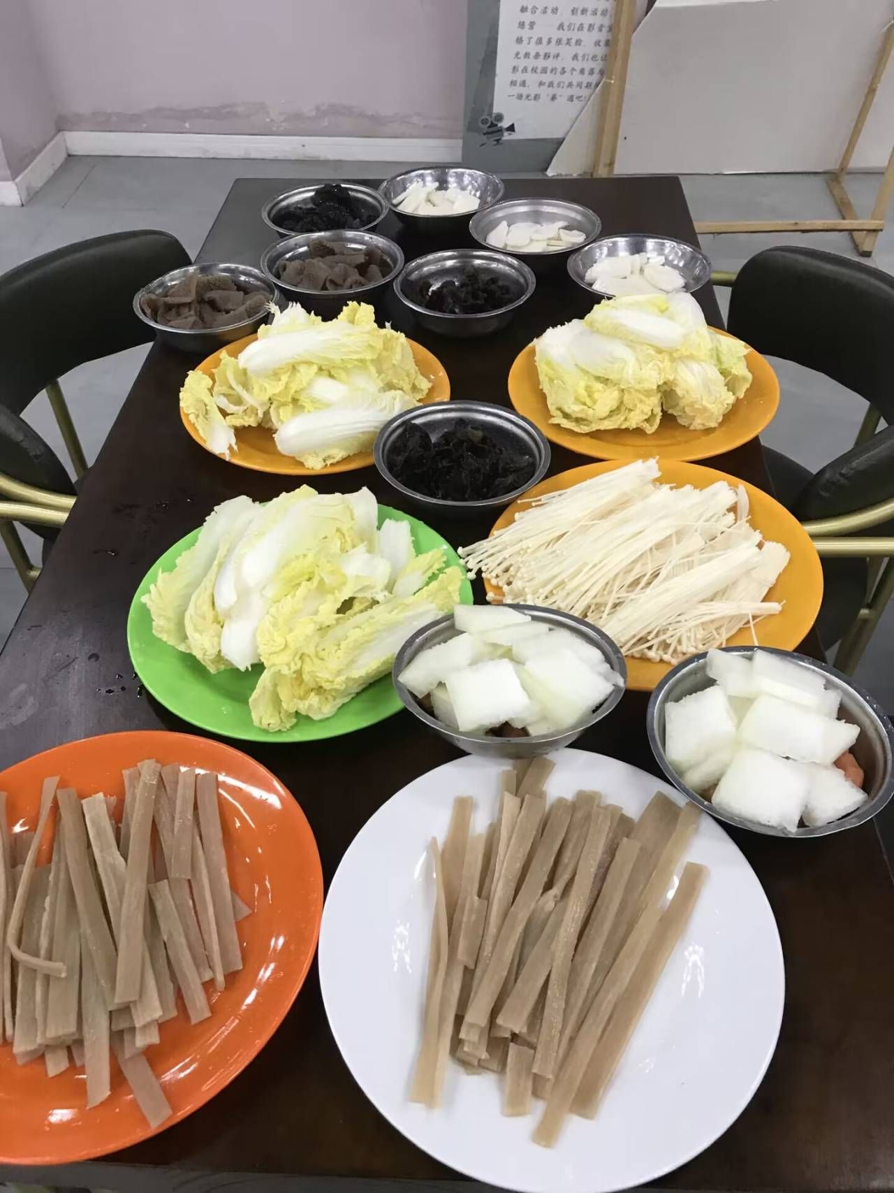 买完食材后,大家迫不及待地奔赴到共享厨房,按照之前的分工立刻投入其中。女生负责洗菜,切菜,男生负责摆餐桌,架锅,准备餐具等,大家各司其职。生活总是在小事中获得成就,获得满足感。一场别开生面的火锅聚餐逐渐在我们的视野中浮现。