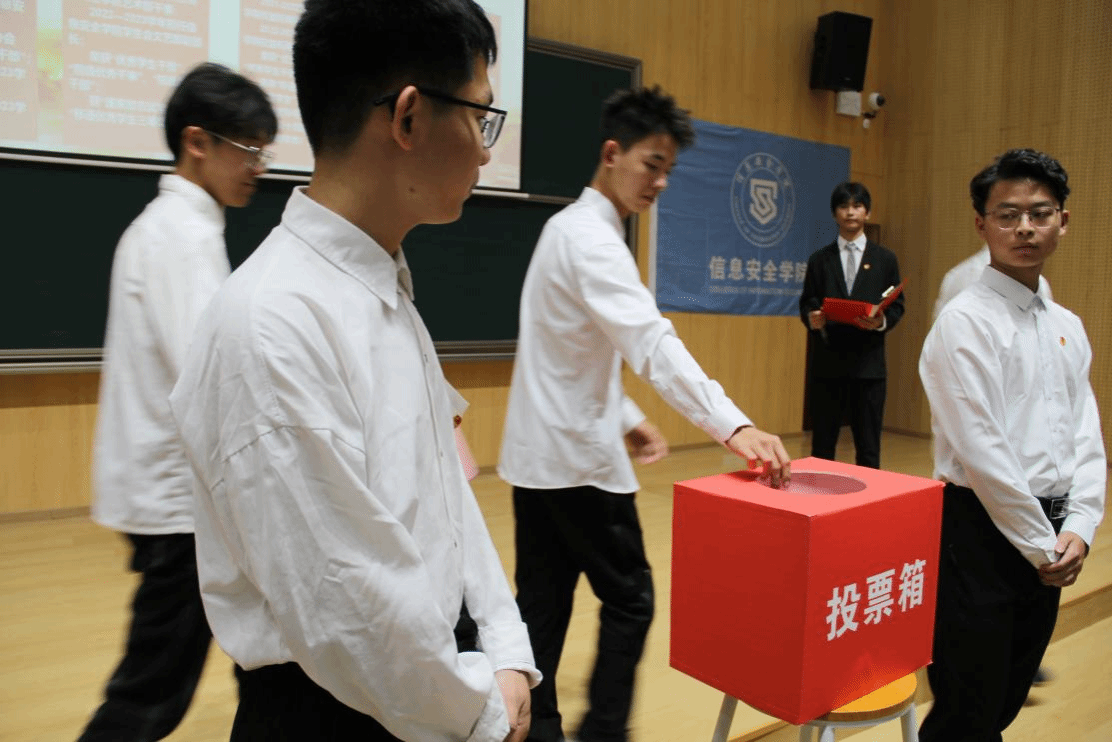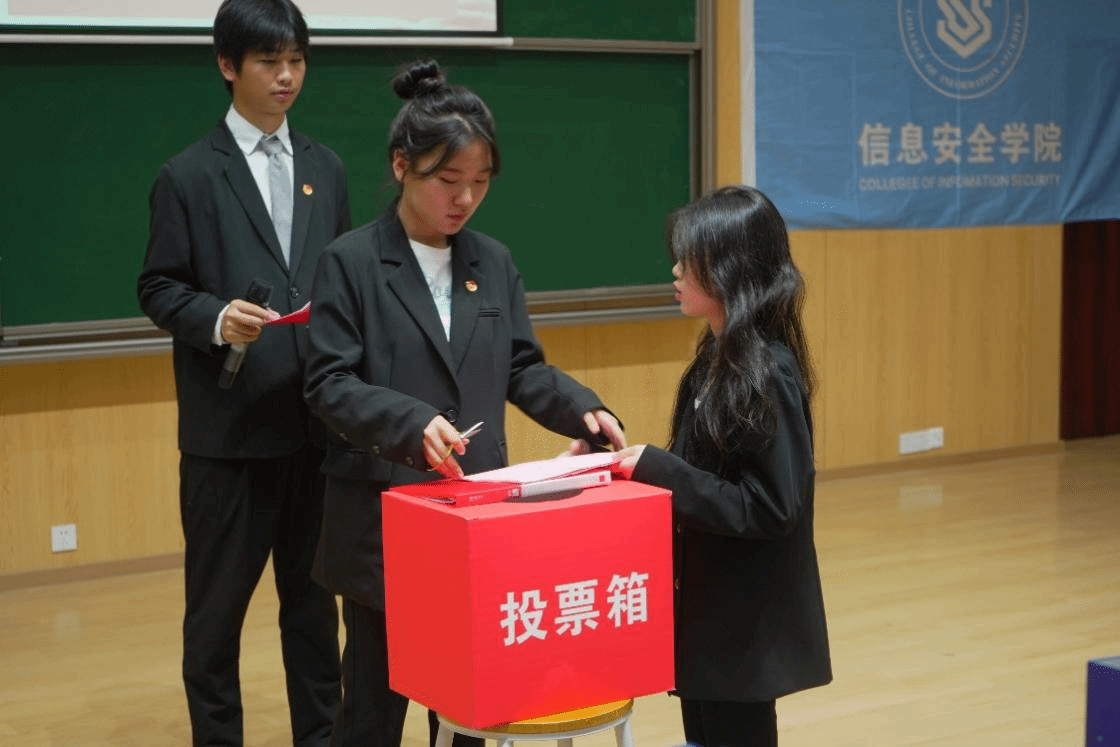 大会最后一项议程进行了重庆移通学院信息安全学院第一届学生委员会委员的选举。秉持公平公正公开的原则,经不记名投票,差额选举出了范利宗、梁航瑞、钟艳维三人为第一届学生委员会委员。