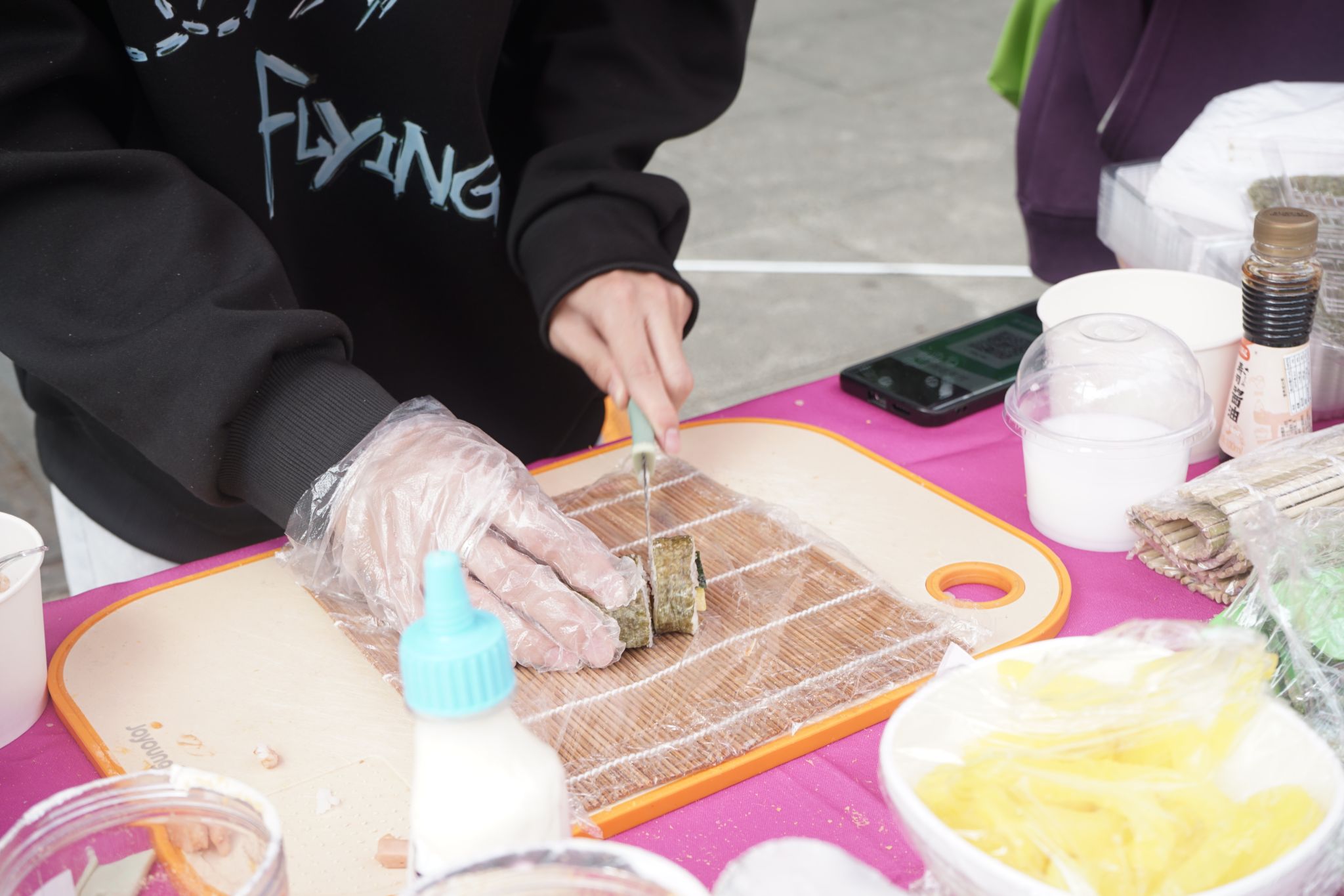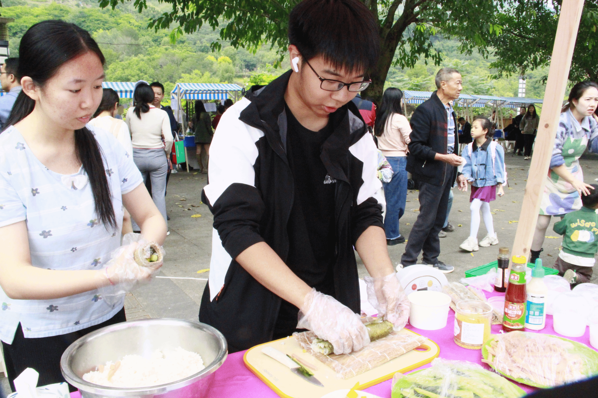 指尖拿捏极致本味的寿司、麻辣鲜香的钵钵鸡、烟火气十足的炭火烧烤、脆皮焦香的烤肠、奶香十足的双皮奶、口感绵密的土豆泥......美食一经展出,就博得无数人的眼球。