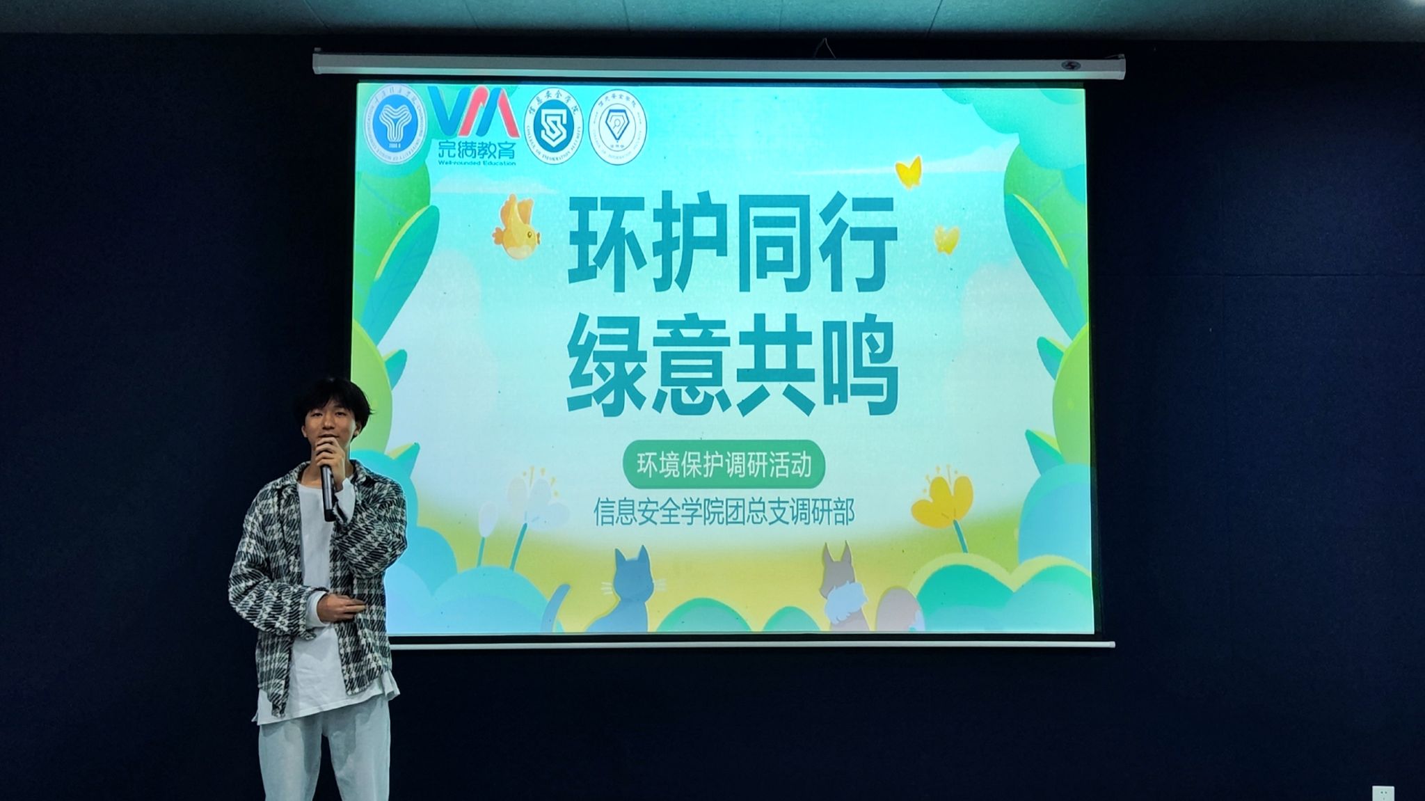 环境与人类息息相关,为了加强环境保护宣传教育,提高信安学子的环保意识,信息安全学院团总支调研部于2023年10月25日17:00在綦河书院2号楼银河·影音室举办了“环护同行,绿意共鸣”环境保护调研活动。在倡导学生的低碳生活和增强时代使命感的同时,弘扬建设美丽中国理念,探索人与自然和谐共生的实践途径。