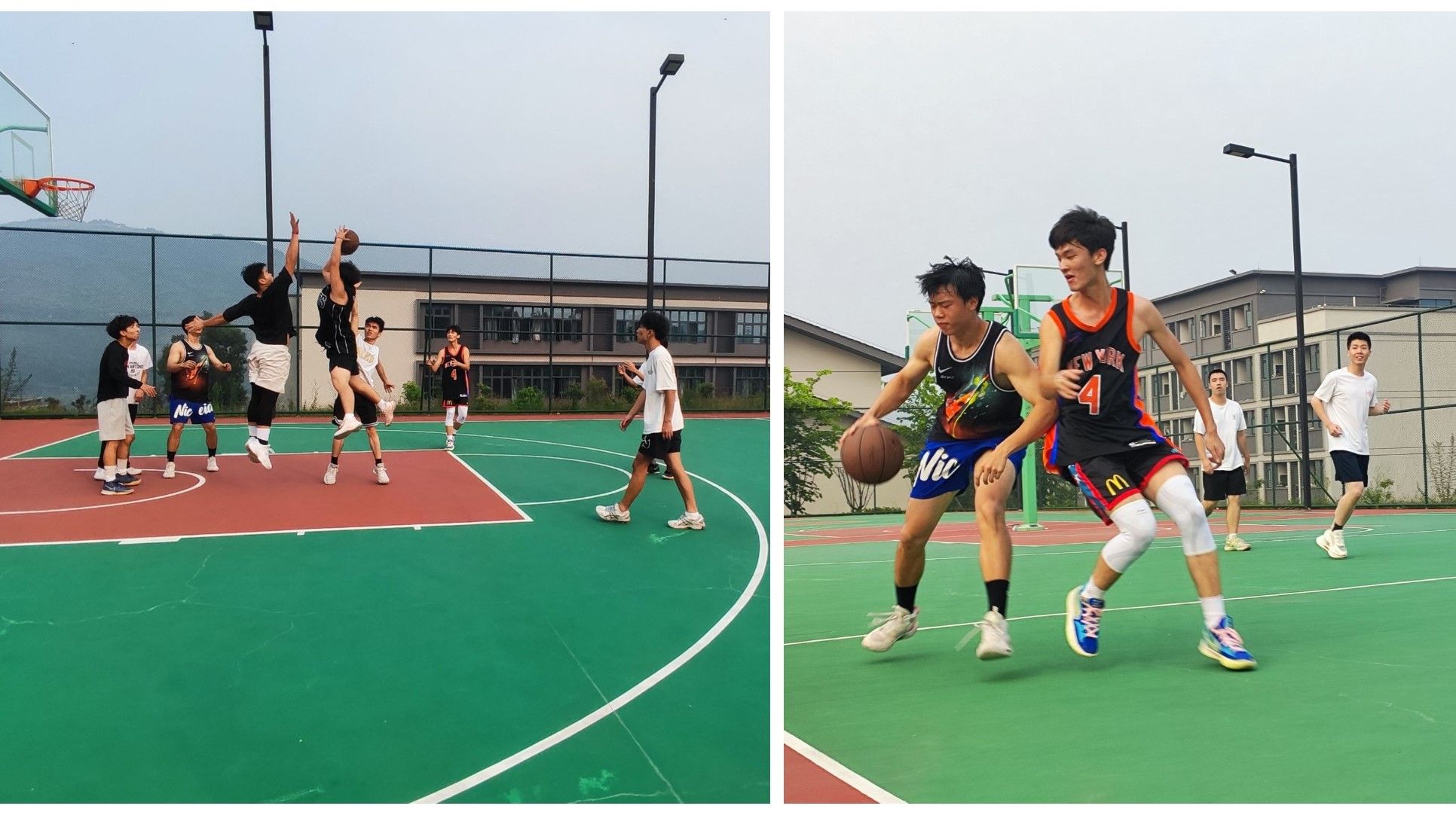 生命不止,运动不息。篮球场上,男生们紧握篮球,在球场上自由穿梭。他们奔跑时轻盈敏捷的脚步,投篮时俊朗清秀的侧脸,配合时强劲有力的指挥声。每一次的防守、接球、跳跃、扣篮无不展现大学生特有的活力与精气神。球擦过空中带着一丝劲风,呼啸而过,准确命中篮筐。他们充满自信,奋发争胜,处处彰显着他们高超的篮球技术和体育竞技精神。