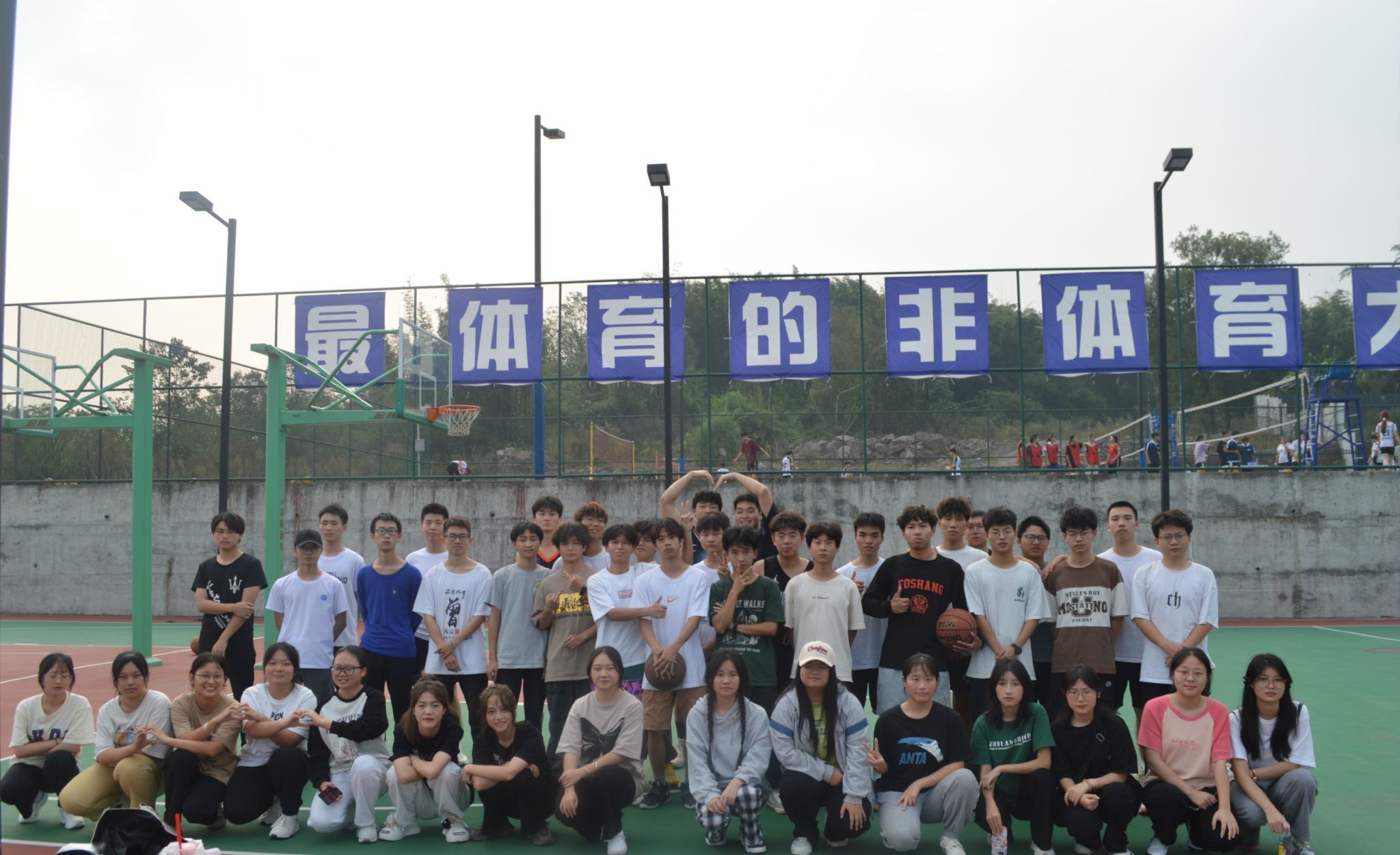 党的二十大报告中提出“加快建设体育强国”,为响应此要求以及契合学校完满教育理念,2023年10月18日下午16:00以物联网工程1班和2班为主体的同学们在卢柯毓导师和王碧硕导师的带领下在横山书院篮球场举办了一场竞技体育联谊活动。该活动主题为“健我强壮体魄,养我浩然正气”,旨在通过开展竞技体育类活动,提升大学生的竞技体育精神,培养自己坚持不懈、永不服输的意志,以达到建设体育强国的目标。