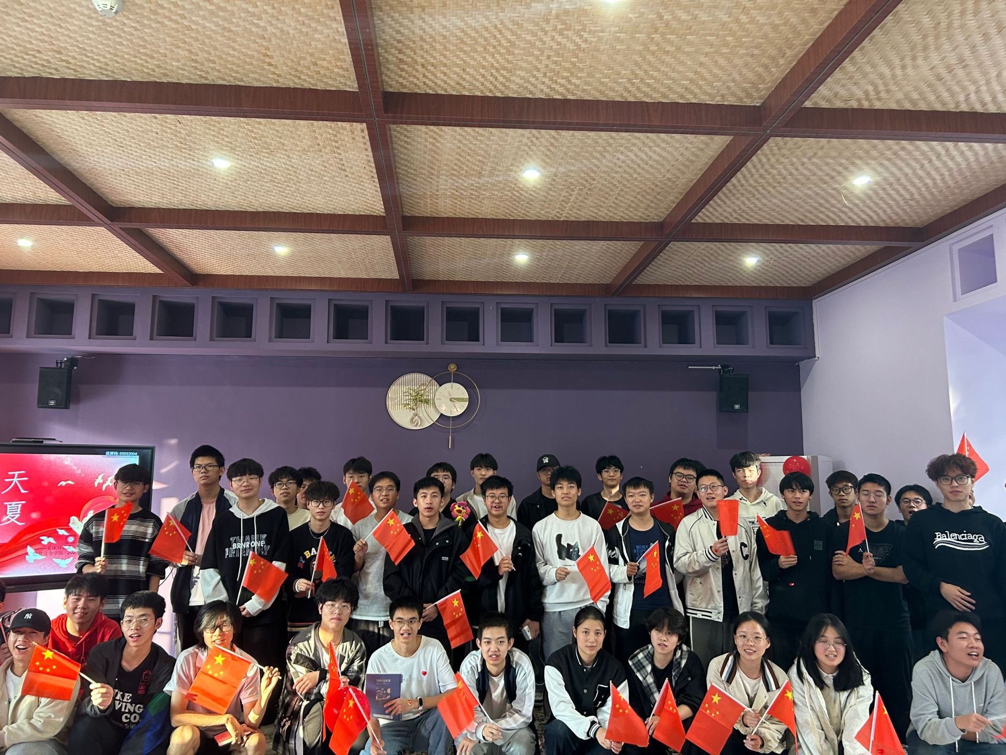 活动即将结束,结束前主持人邀请同学们发出爱国寄语,让同学们说出对国家的美好祝愿并进行合唱《我和我的祖国》。爱国是一个永恒不变的主题,其实我们不一定要做一个多么伟大的人,我们只需要做好自己就行;但我们当心中有光,眼里有光,负百年荣光而行,不负时代,不负人民!最后,以一张照片记录下这个难忘的时刻,至此此次活动落下帷幕。