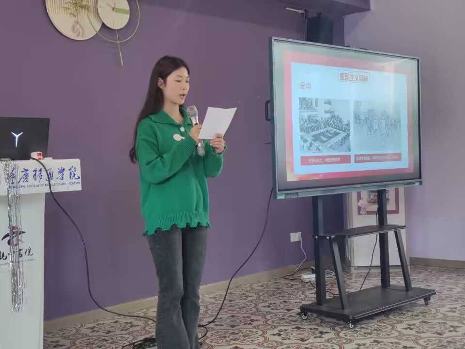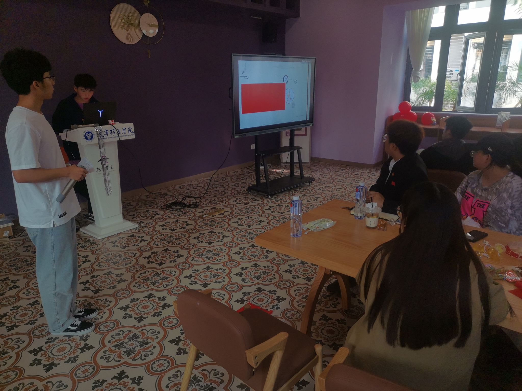 活动伊始,主持人李秋汛播放爱国视频,激发同学们的爱国热情,紧接着介绍嘉宾,辅导员张颖,各班班导师。过后由向小萍发出爱国宣讲,张颖老师述说了爱国情怀的重要性,并鼓励我们成为一个爱国青年。