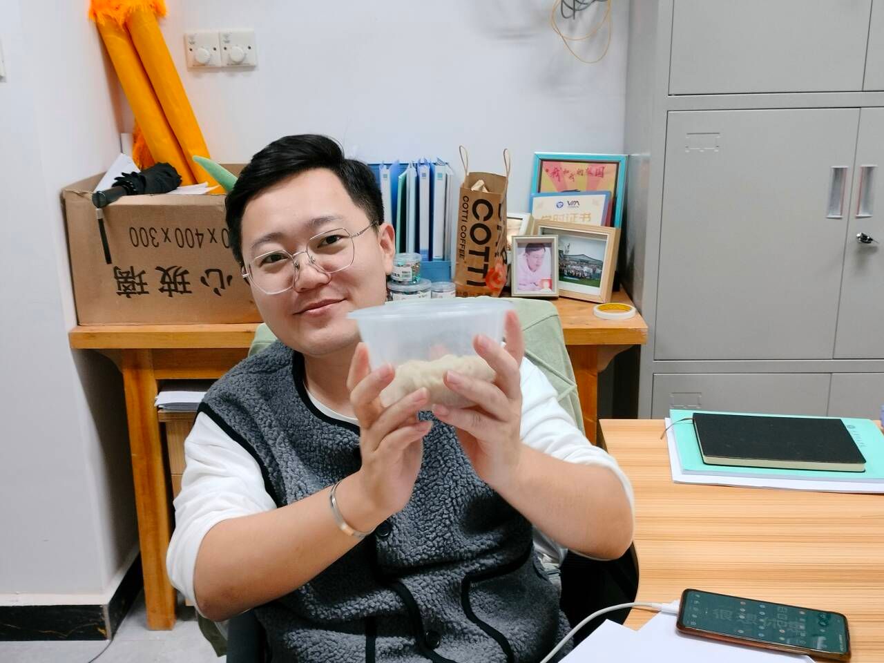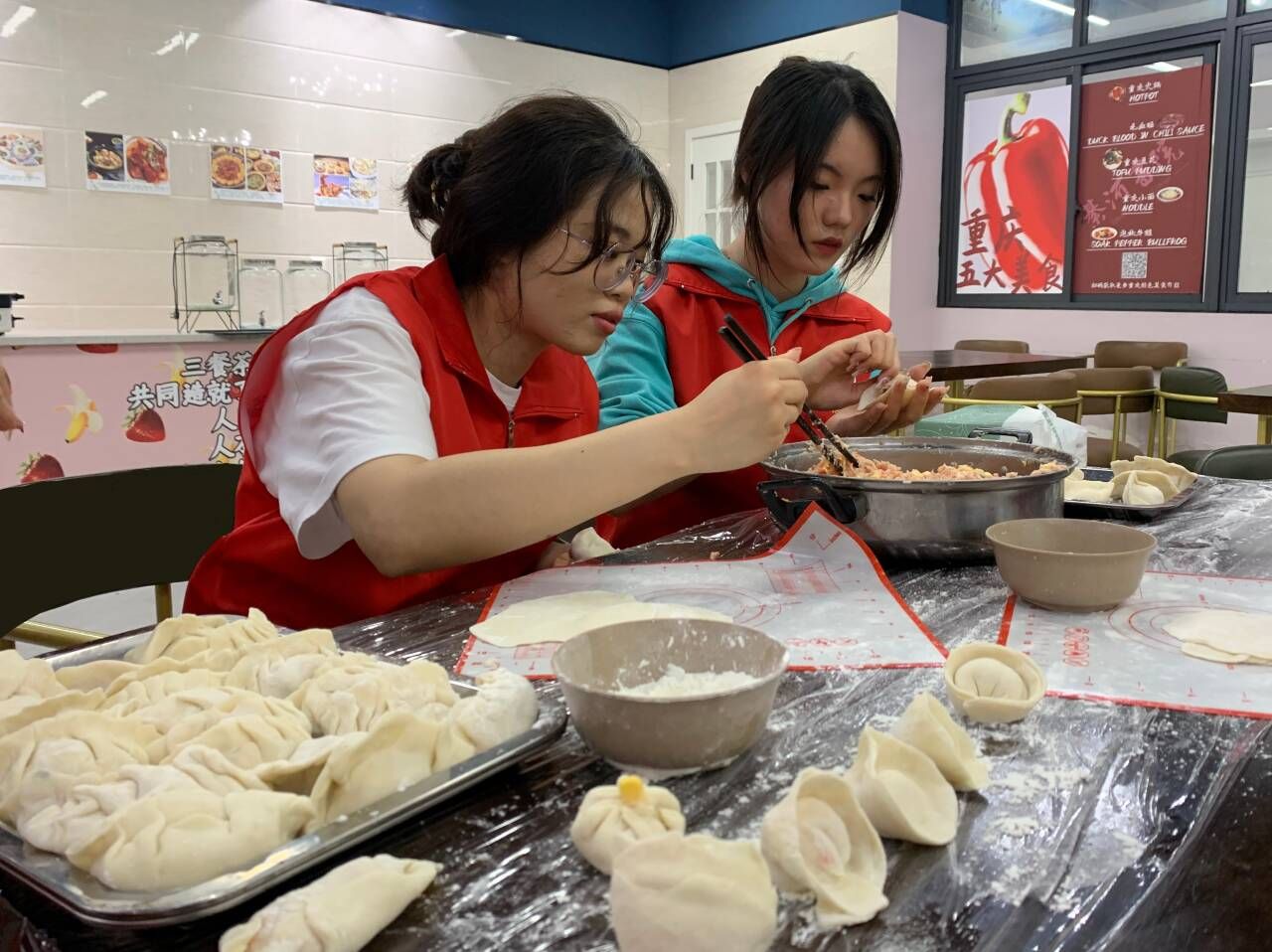 活动现场,信息安全学院青年志愿者协会志愿者和美食协会成员分工合作,志愿者充分发挥“互助”精神,有的负责和面、擀皮,有的准备饺子馅,有的清洗碗筷、洗菜。一切准备就绪,开始包饺子。一个个饺子虽然形态各异,但却心意满满。烧水下饺子,片刻后,志愿者将一个个包含着感激与关心的饺子有序地装进预先准备好的打包盒里,整个活动室洋溢着热闹非凡的欢乐气氛。