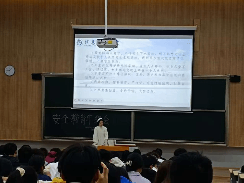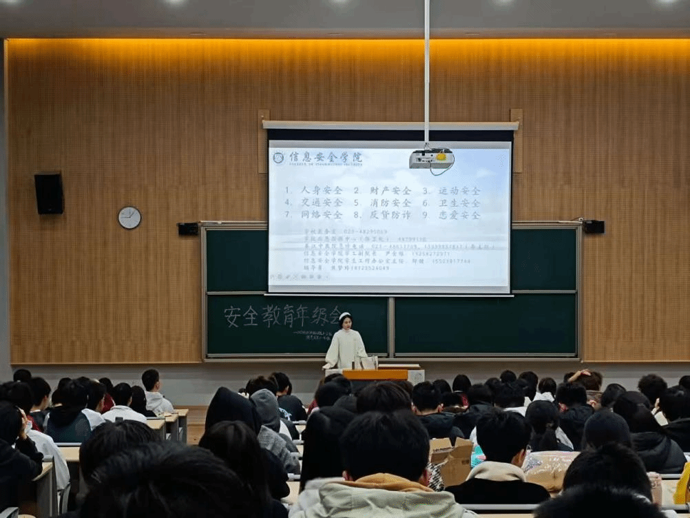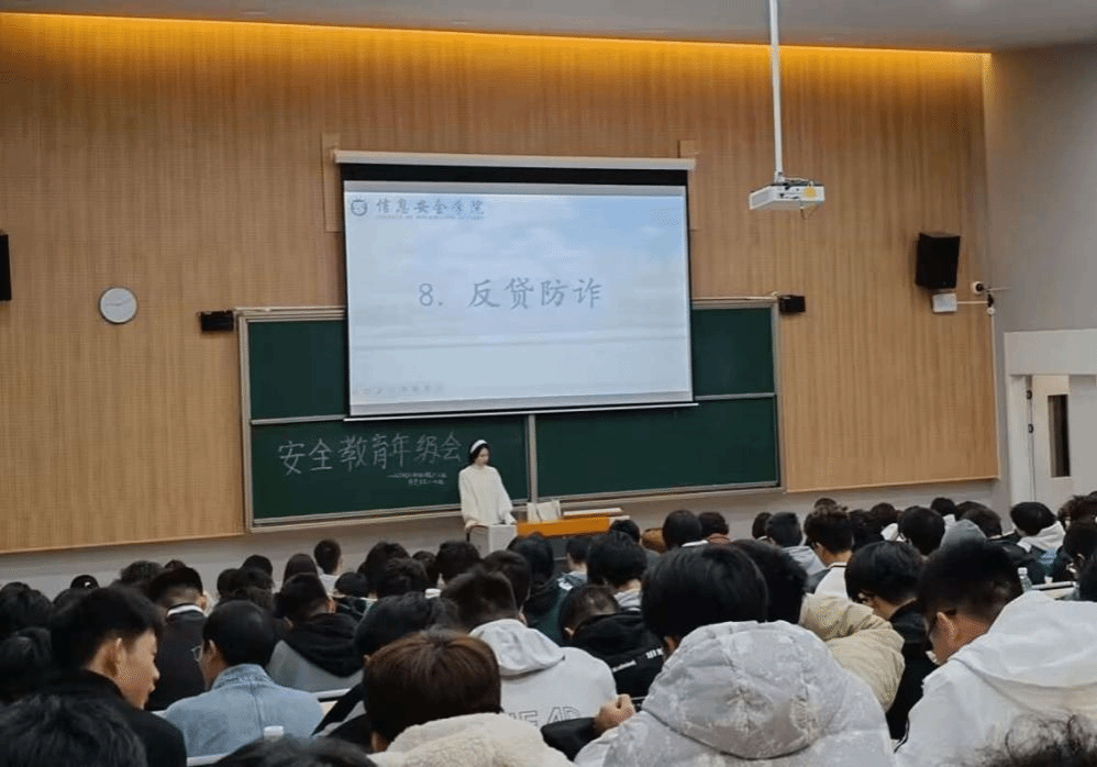 为提升同学们的人生素养和安全防范意识,信息安全学院信息安全1—4班、区块链1—2班于11月14日在横山书院阶梯教室举办了一场“信息安全学院11月份安全警示教育”大会,辅导员焦梦玲老师作为主讲人,深入浅出地为同学们传达了关于安全问题的多方面知识。